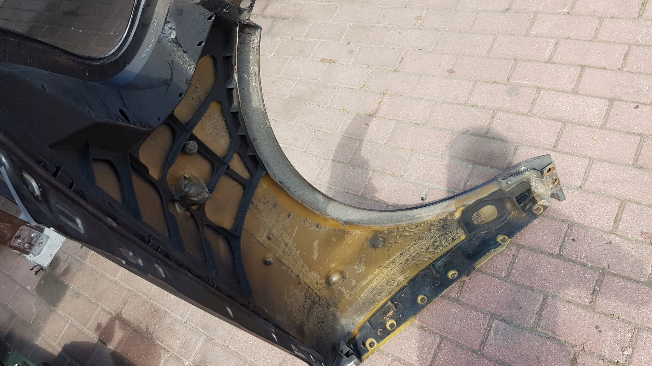 BŁOTNIK PRZEDNI LEWY DO SAMOCHODU TOUAREG. UŁAMANA CZĘŚĆ GÓRNEGO MOCOWANI (ZDJĘCIA NR 5). STAN WIDOCZNY NA ZDJĘCIACH.