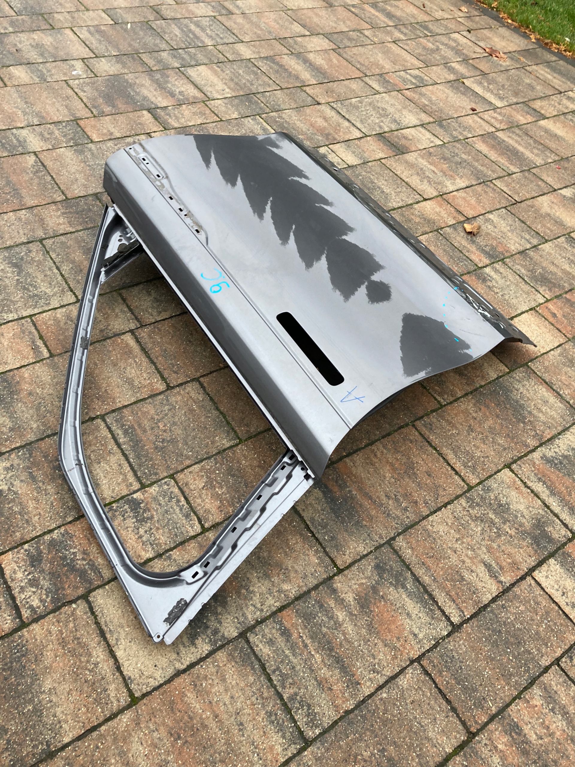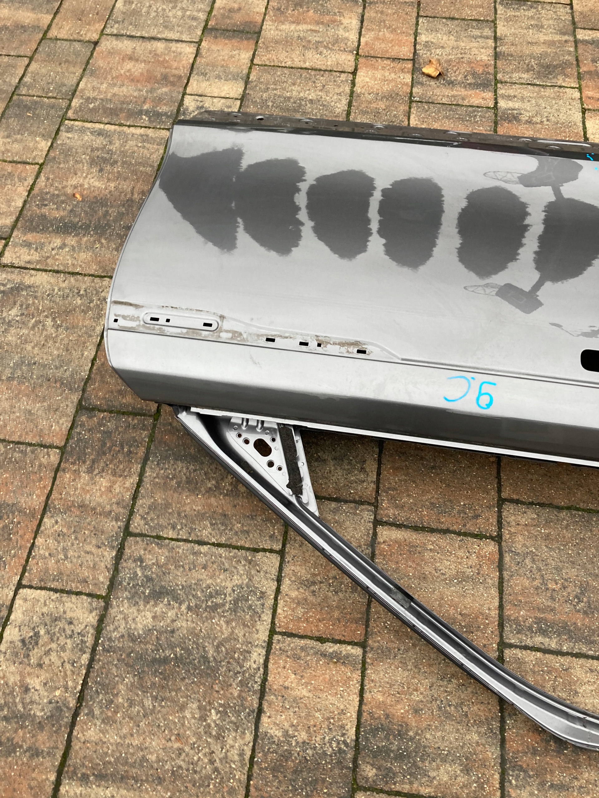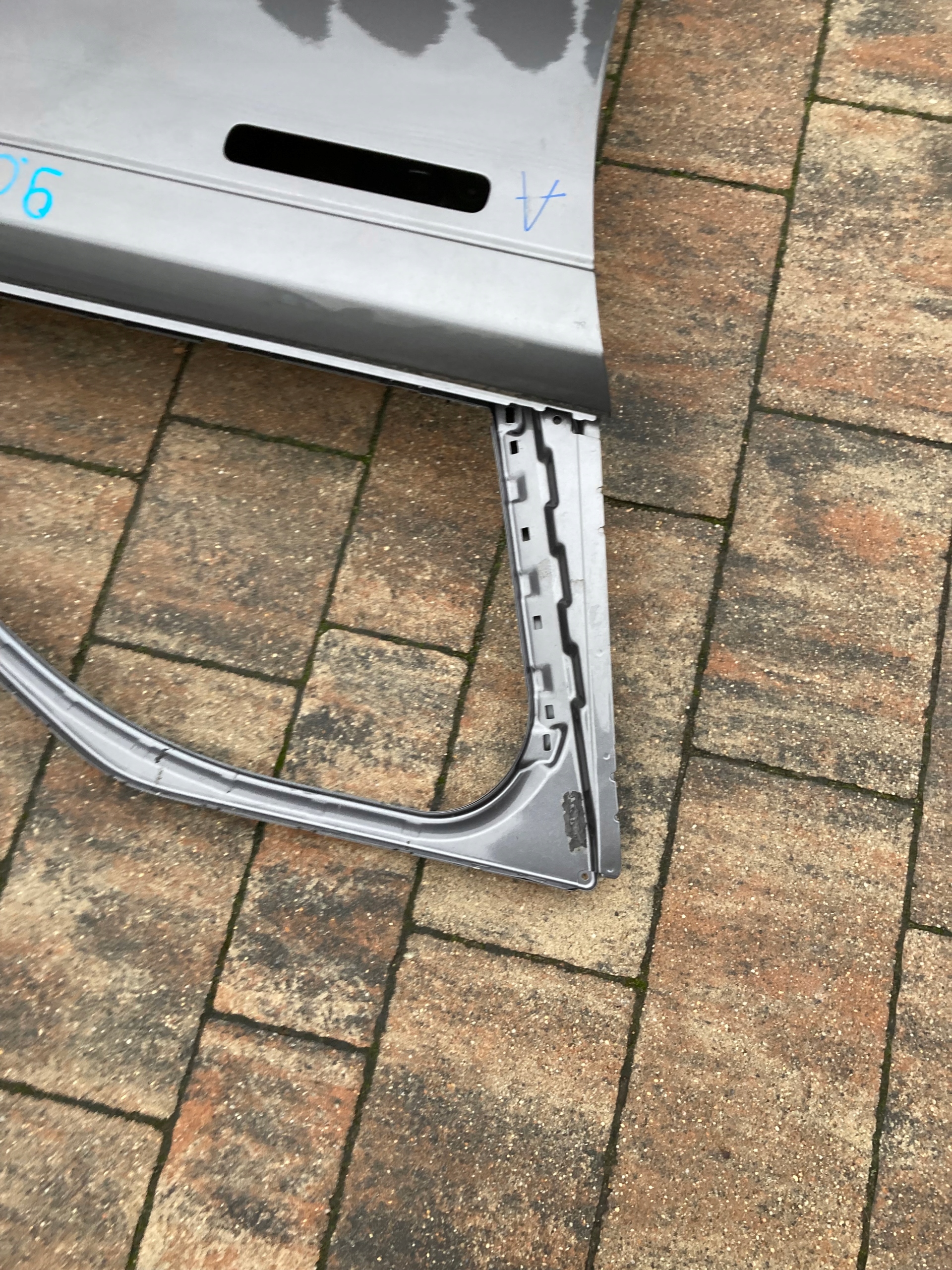 Drzwi używane,oryginalne.Naprawiane w zaznaczonym miejscu.Wymagają ponownego lakierowania.