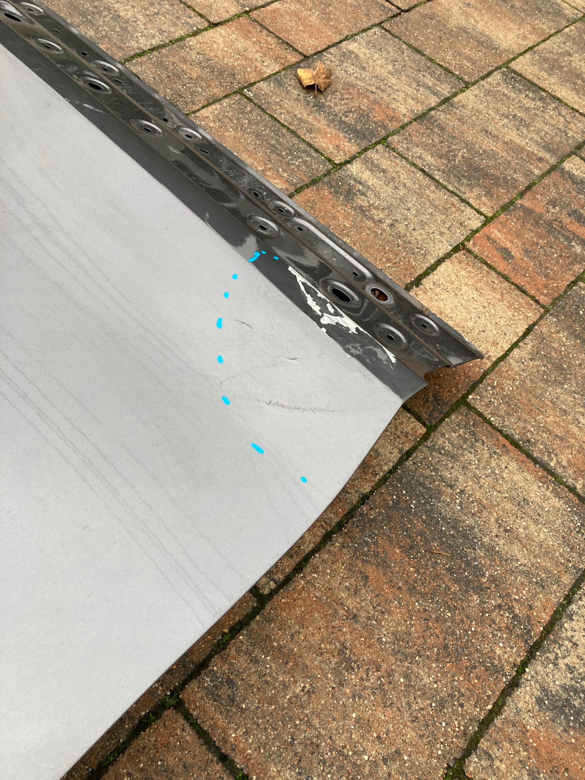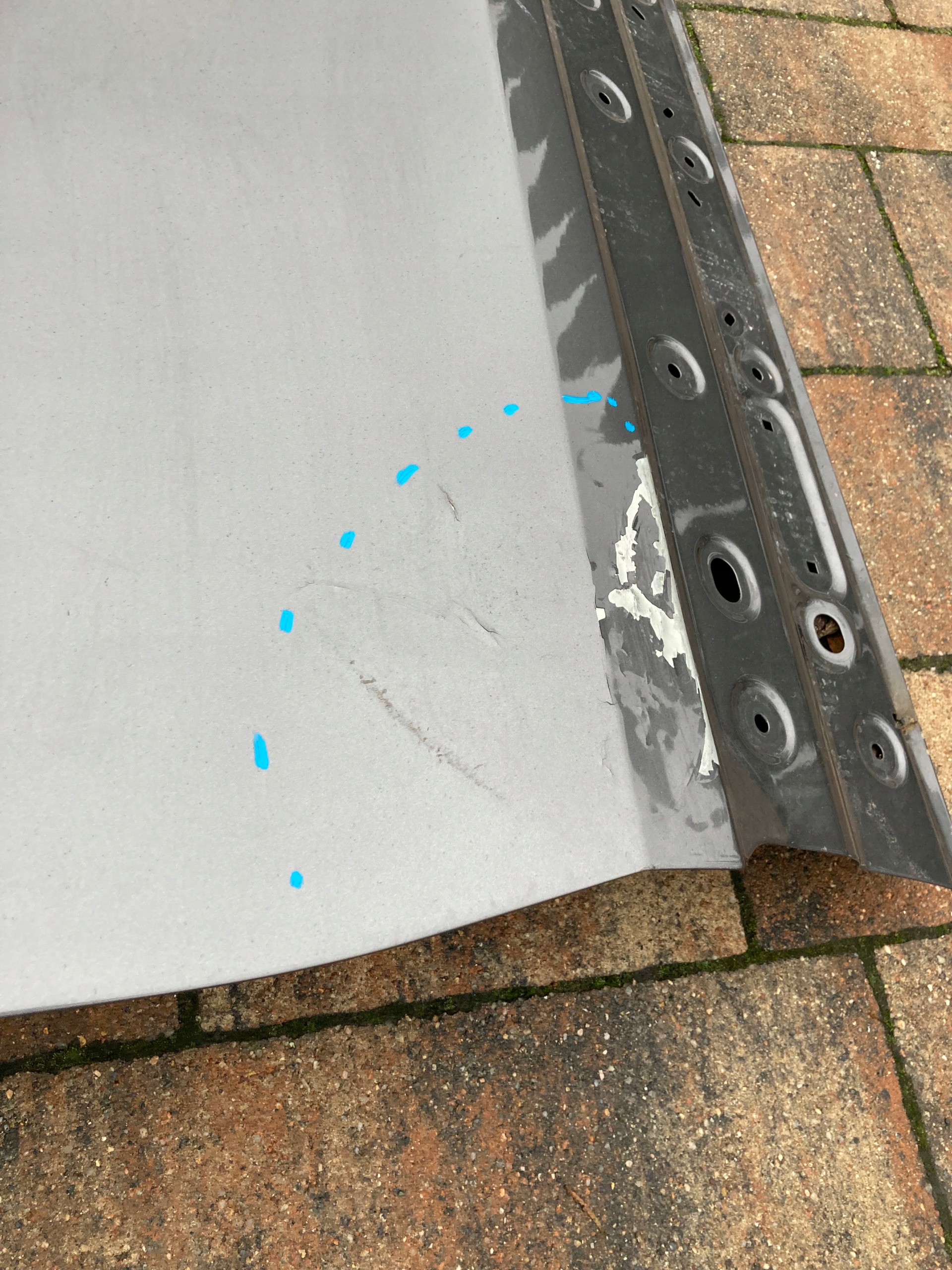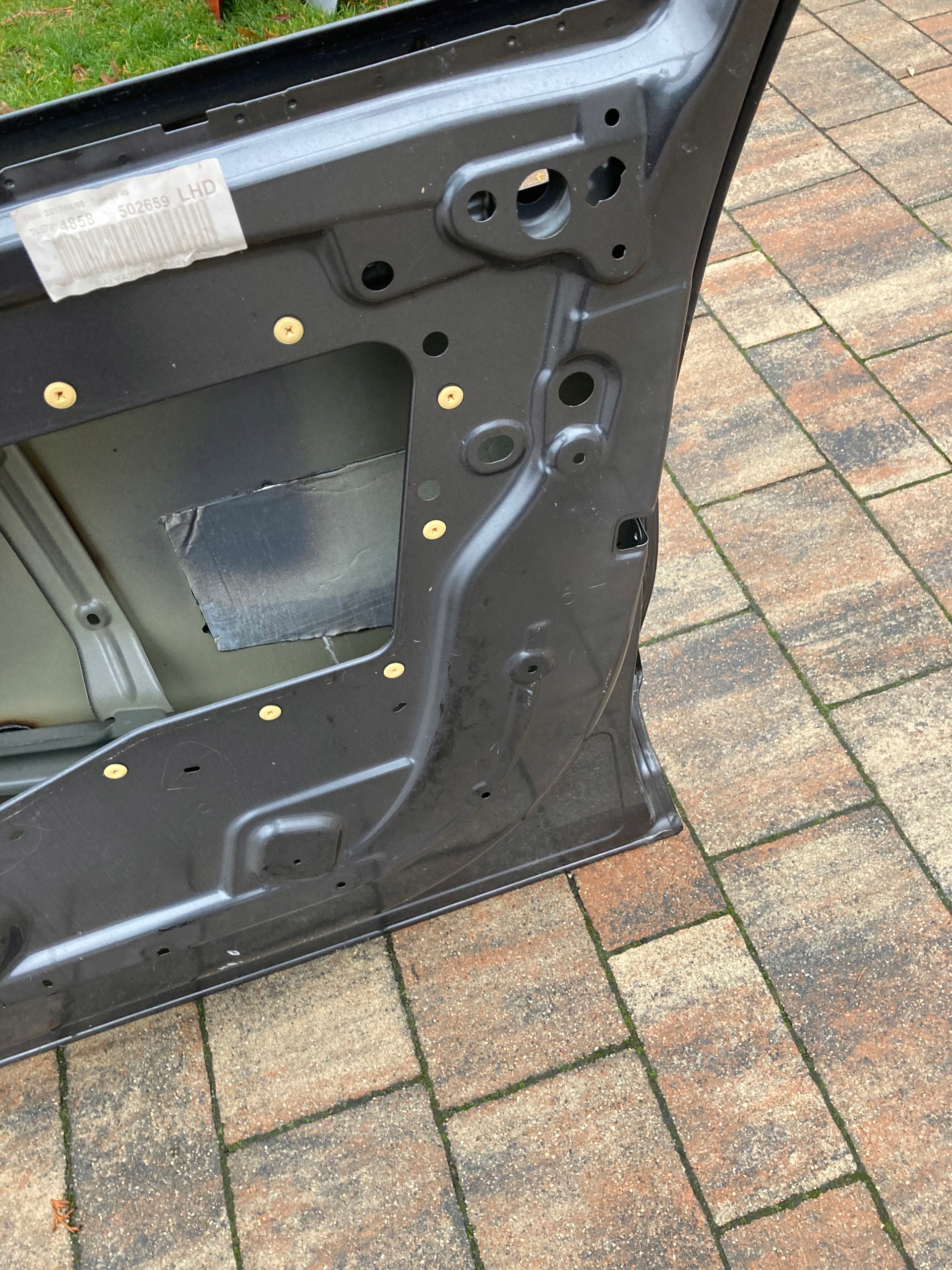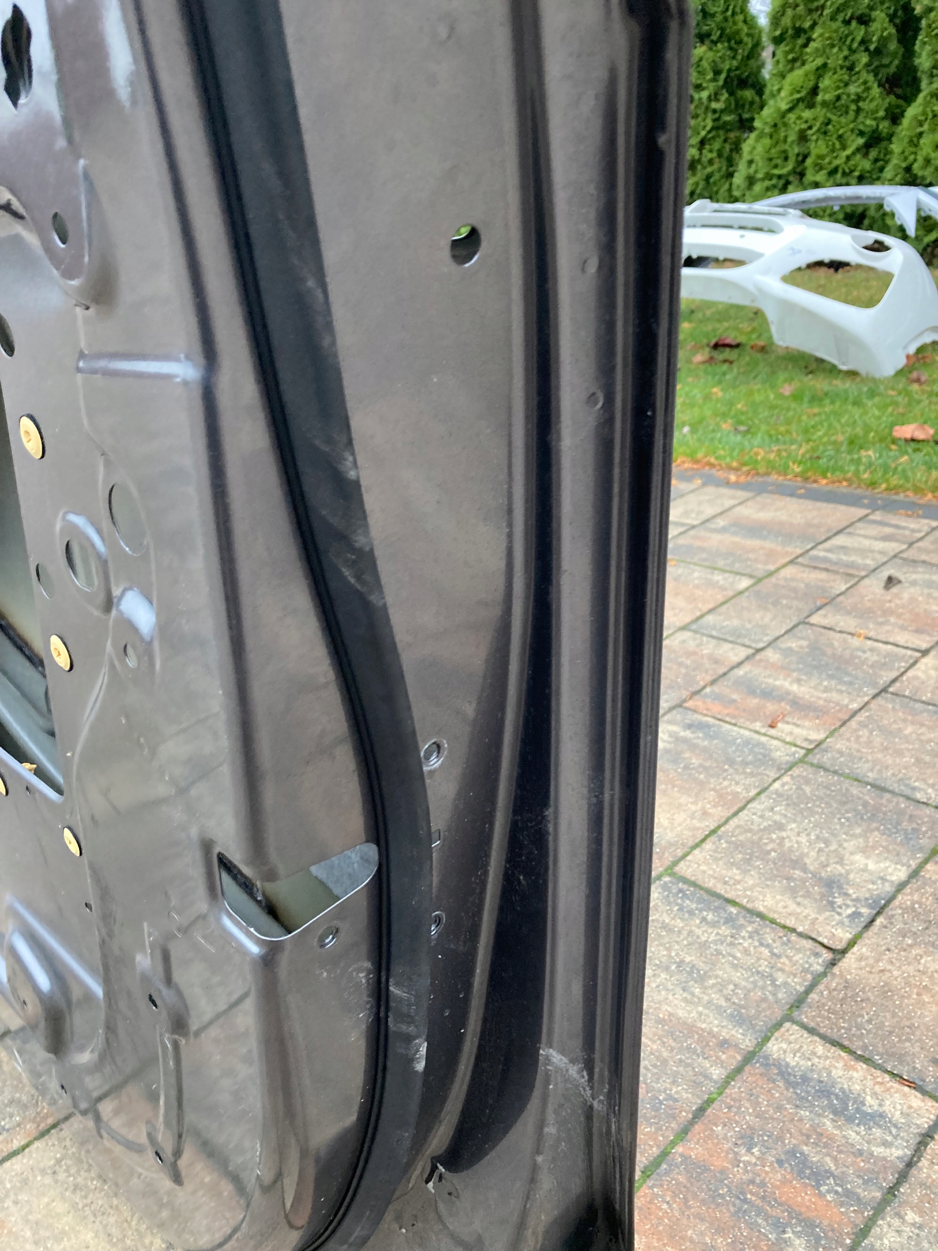 Drzwi używane,oryginalne.Naprawiane w zaznaczonym miejscu.Wymagają ponownego lakierowania.