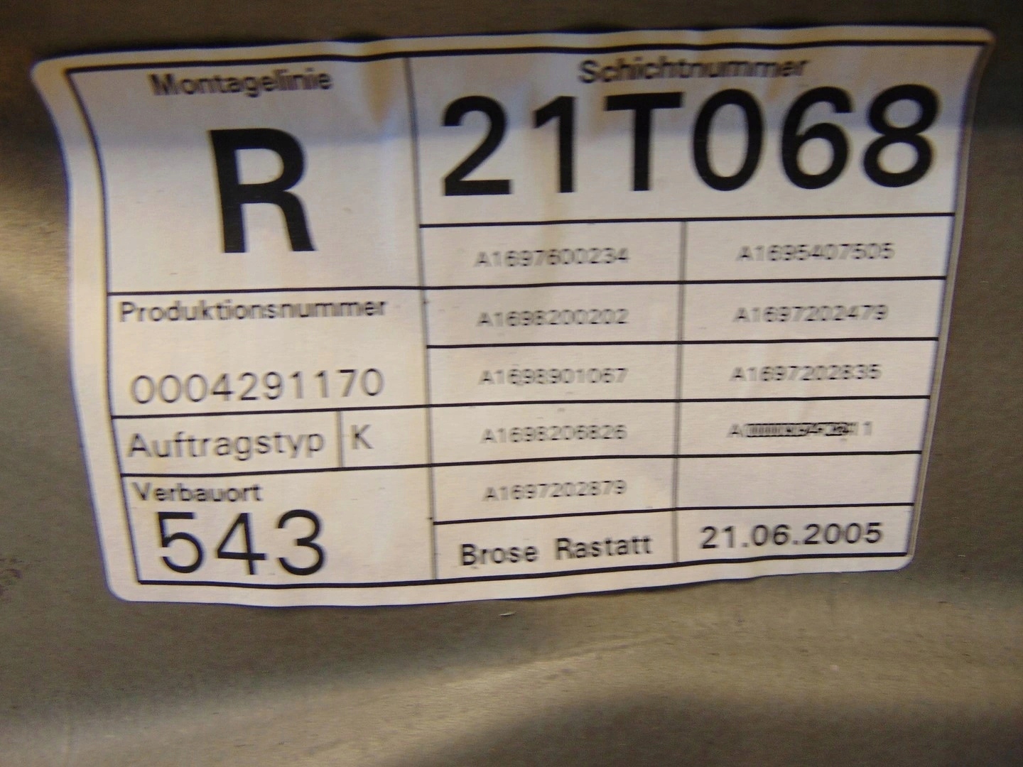 | Каталожный номер запчасти: | A1697202879 |