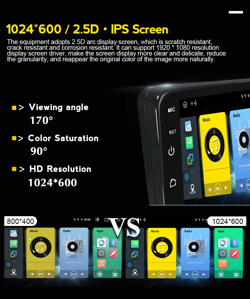 - Pojemnościowy ekran IPS 2,5D SAMSUNG o rozdzielczości 1024x600 9 cali