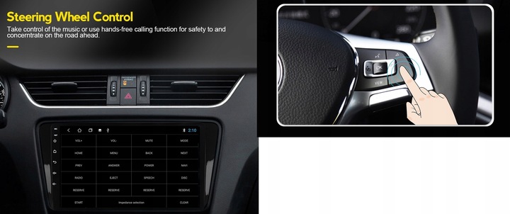 - Sterowanie z kierownicy - jedna z podstawowych i pożądanych funkcji. Bez problemu radionawigacja obsługuje fabryczne sterowanie radiem z koła kierownicy. W większości modeli, sterowanie z kierownicy odbywa się poprzez magistralę CAN (cyfrowo) więc nawet nie trzeba nic ustawiać, sygnały automatycznie docierają z samochodu do radia . W innych modelach (bez CAN) wystarczy skorzystać z przyjaznej i intuicyjnej aplikacji do nauki klawiszy - zajmuje to dosłownie max. 2 minuty!