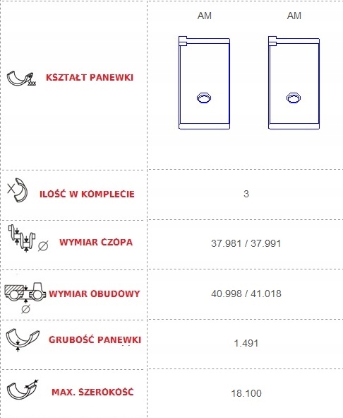 DLA ŚREDNICY OBUDOWY (STOPY KORBOWODU) FI 40,998 mm DO 41,018 mm