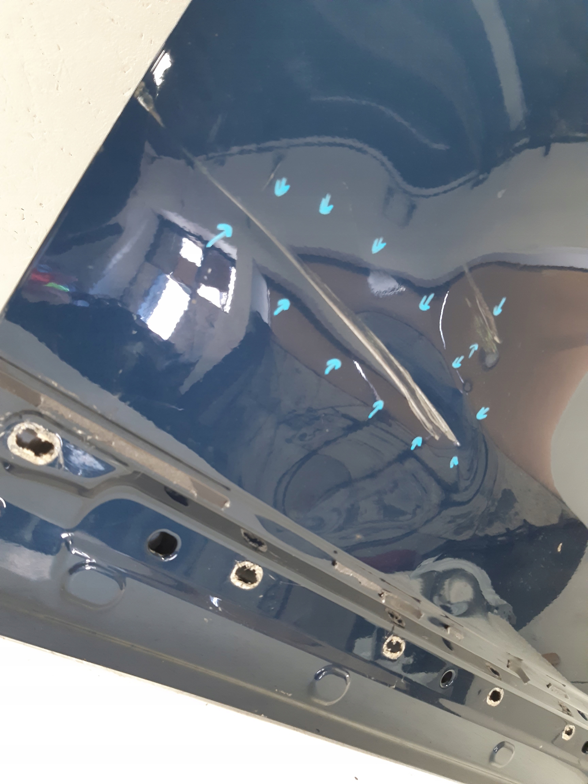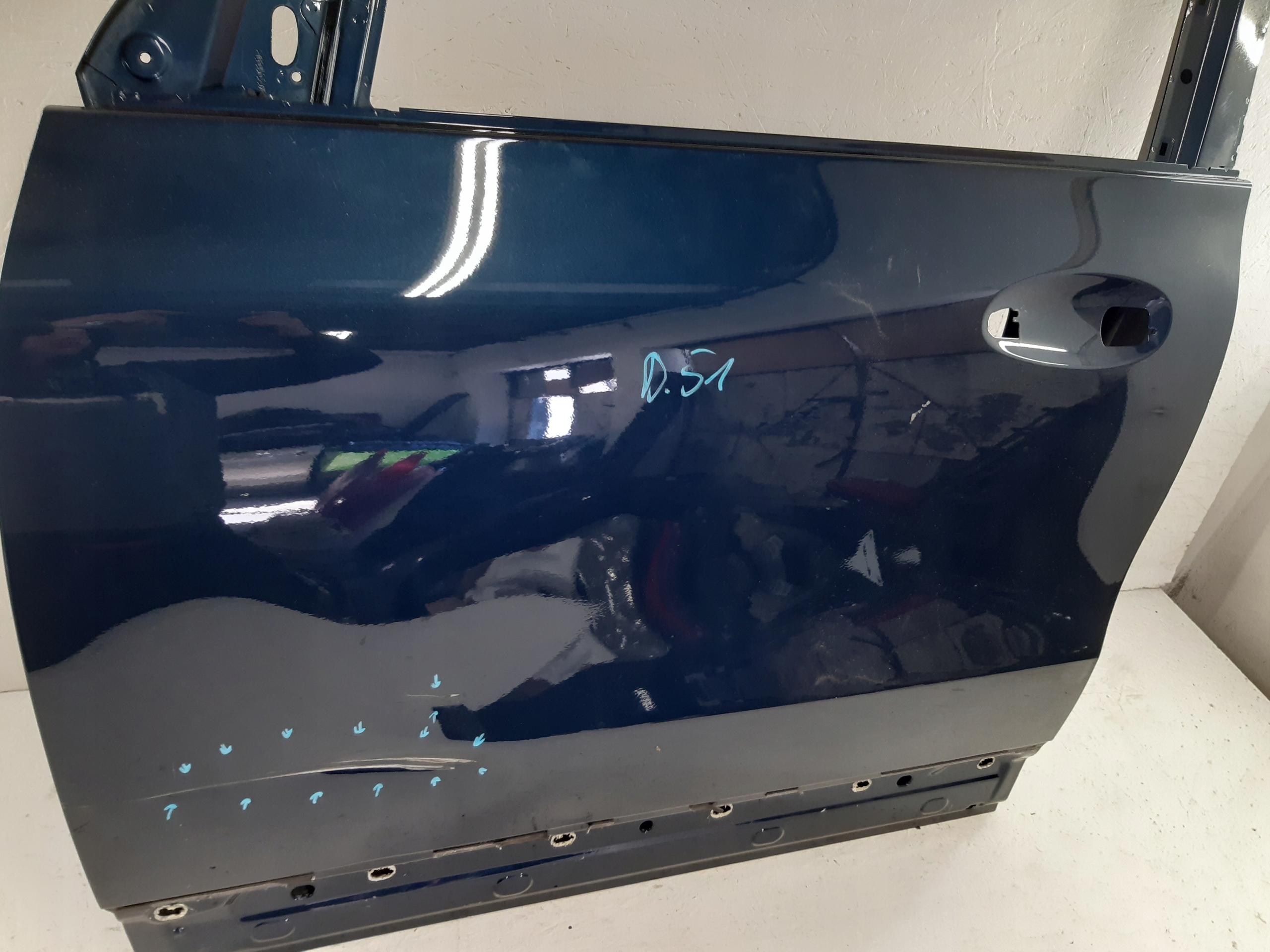 Mercedes GLA W247 II drzwi przednie lewe uszkodzenia zaznaczone marker do naprawy blacharsko lakierniczej