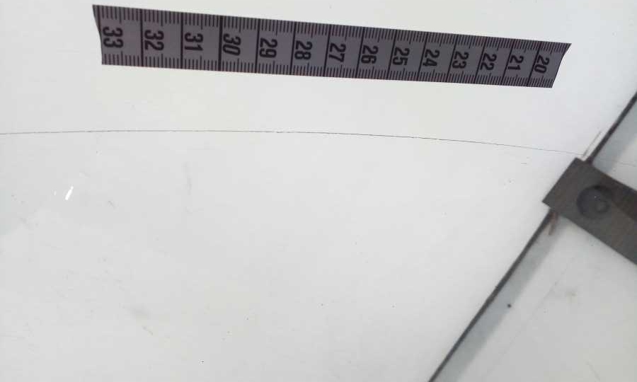 SZYBA POSIADA POWIERZCHOWNE OTARCIE PO STRONIE PASAŻERA W ZAZNACZONYM MIEJSCU.