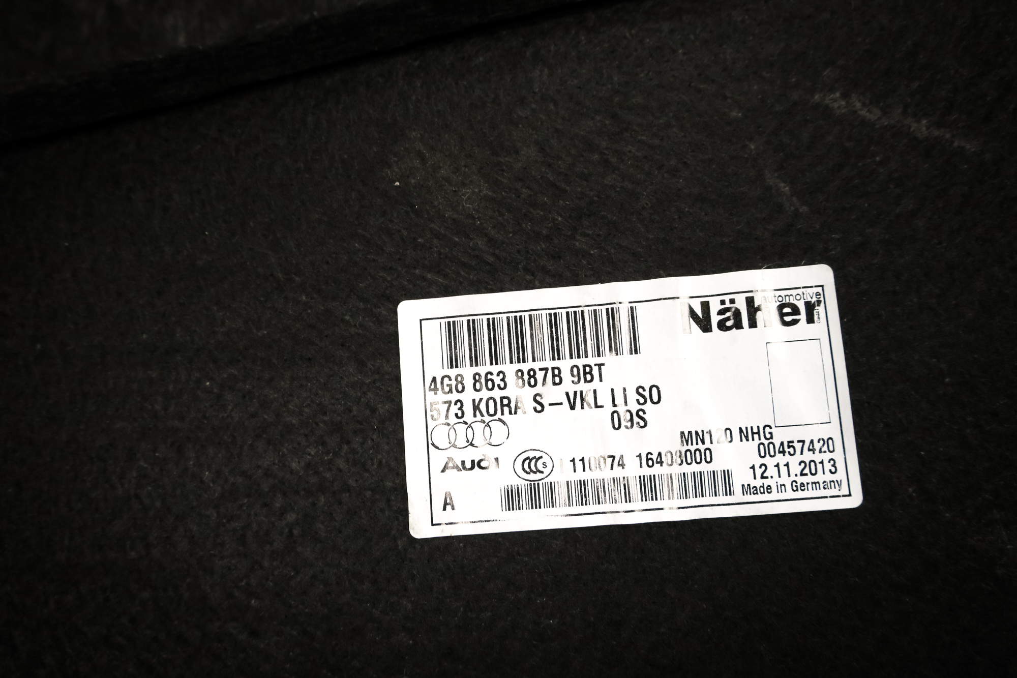 Обивка боковина багажника audi оригинальный номер 4g8863887b