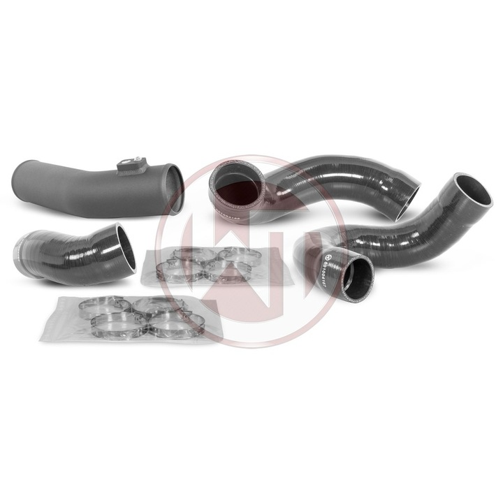 The connection diameters are Ø62mm at the intercooler inlet and Ø67mm at the intercooler outlet. This is optionally available z complete charge air piping and includes 1 aluminum charge pipe and 3 reinforced silicone hoses.