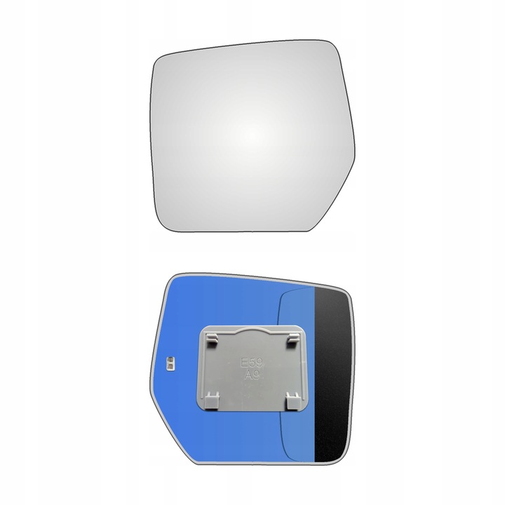 Lewy ogrzewany wkład sferyczny lusterka - z plastikiem montażowym typu E59 i oddalającym (bezbarwnym) szkłem z grzałką