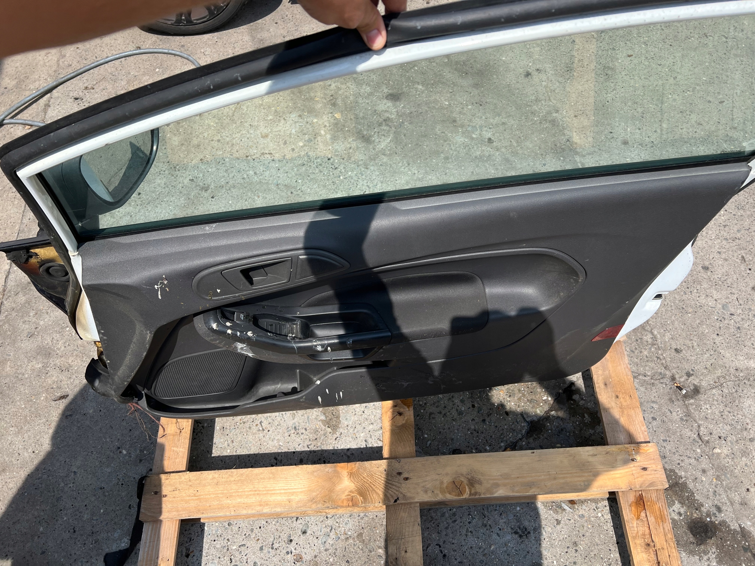 FIRD Fiesta MK7 3 drzwi 2013r. Drzwi prawe przednie, przypalony przód tak jak na zdjęciach (do malowania) kompletne z szybą. Wersja Europejska, ORYGINAŁ FORD