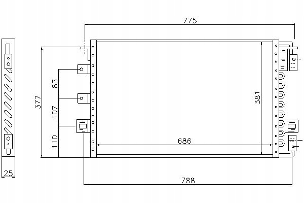 - Wymiary radiatora: 686 X 381 X 25 mm