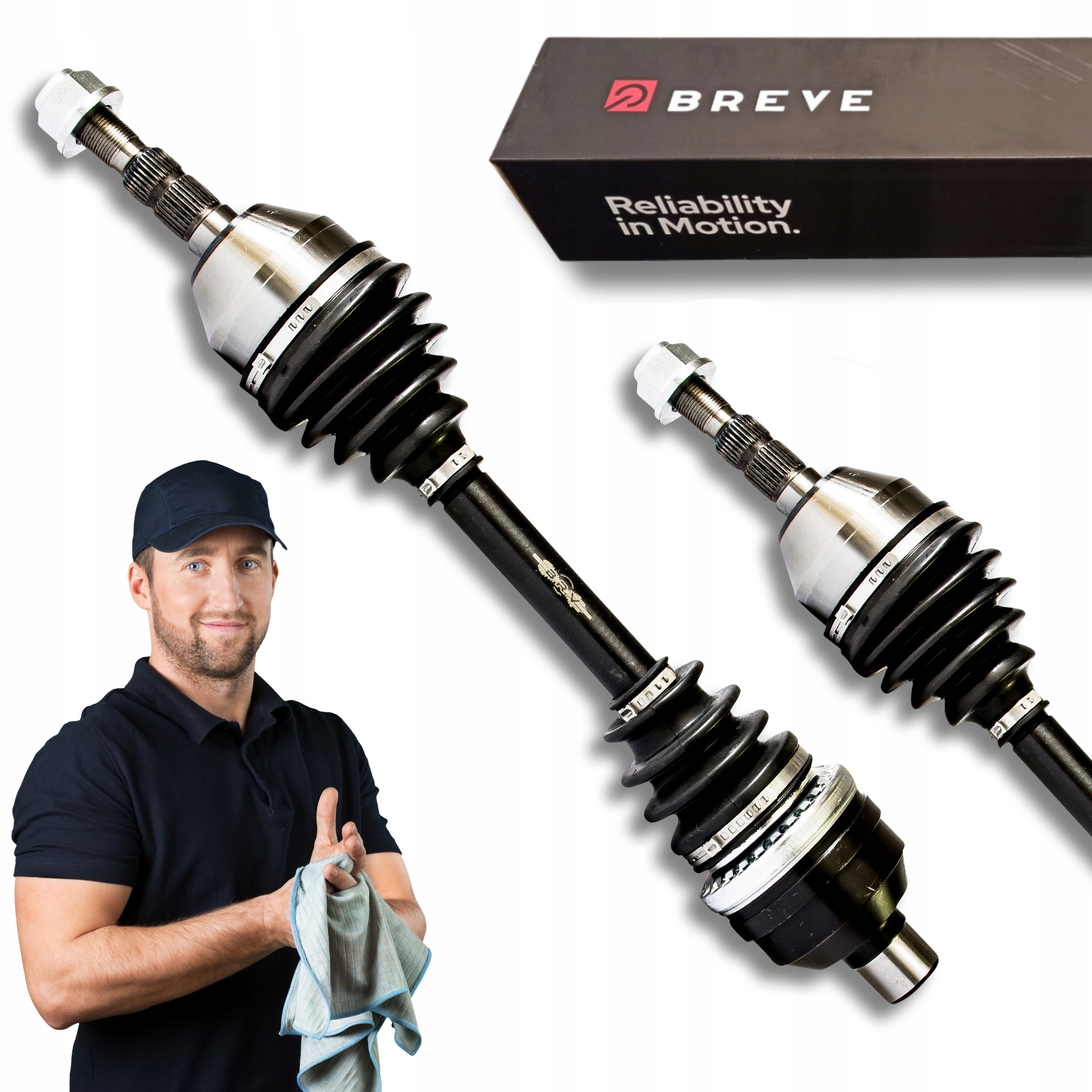 Każdy zestaw naprawczy BRV zawiera wszystkie niezbędne elementy, w tym zmontowaną półoś napędową, wałek, zewnętrzny i wewnętrzny przegub homo-kinetyczny, smar, osłony neoprenowe, opaski zaciskowe oraz nakrętkę (śrubę montażową).