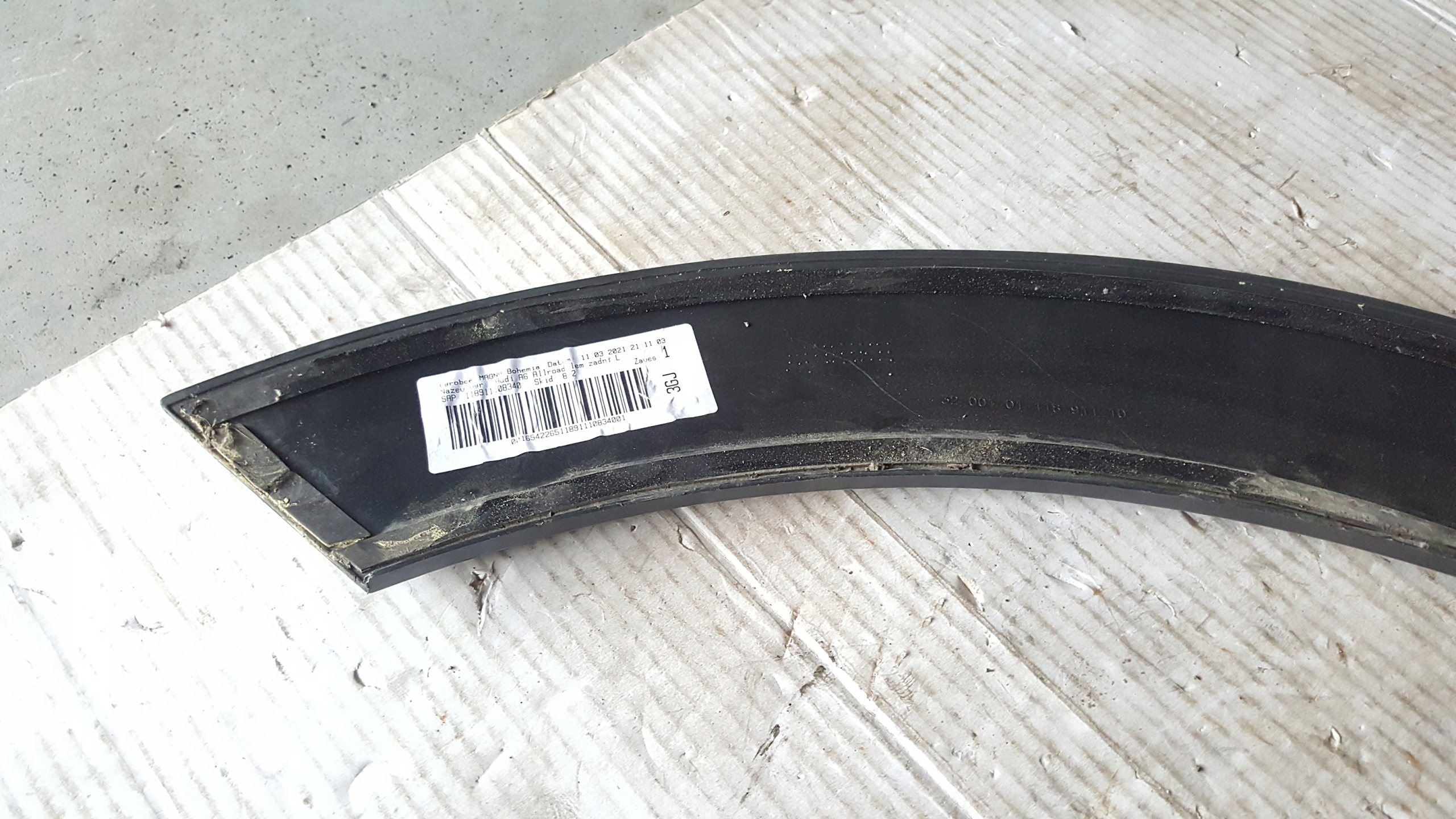 Listwa błotnika lewy tył-- AUDI A6 C8 ALLROAD nr. 4K9853817, oryginał z demontażu, stan-foto, cena za 1 szt., posiada ślady uży tkowania.