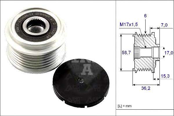 KOŁO PASOWE ALTERNATORA FORD INA + GRATIS ZAWIESZKA SERWISOWA