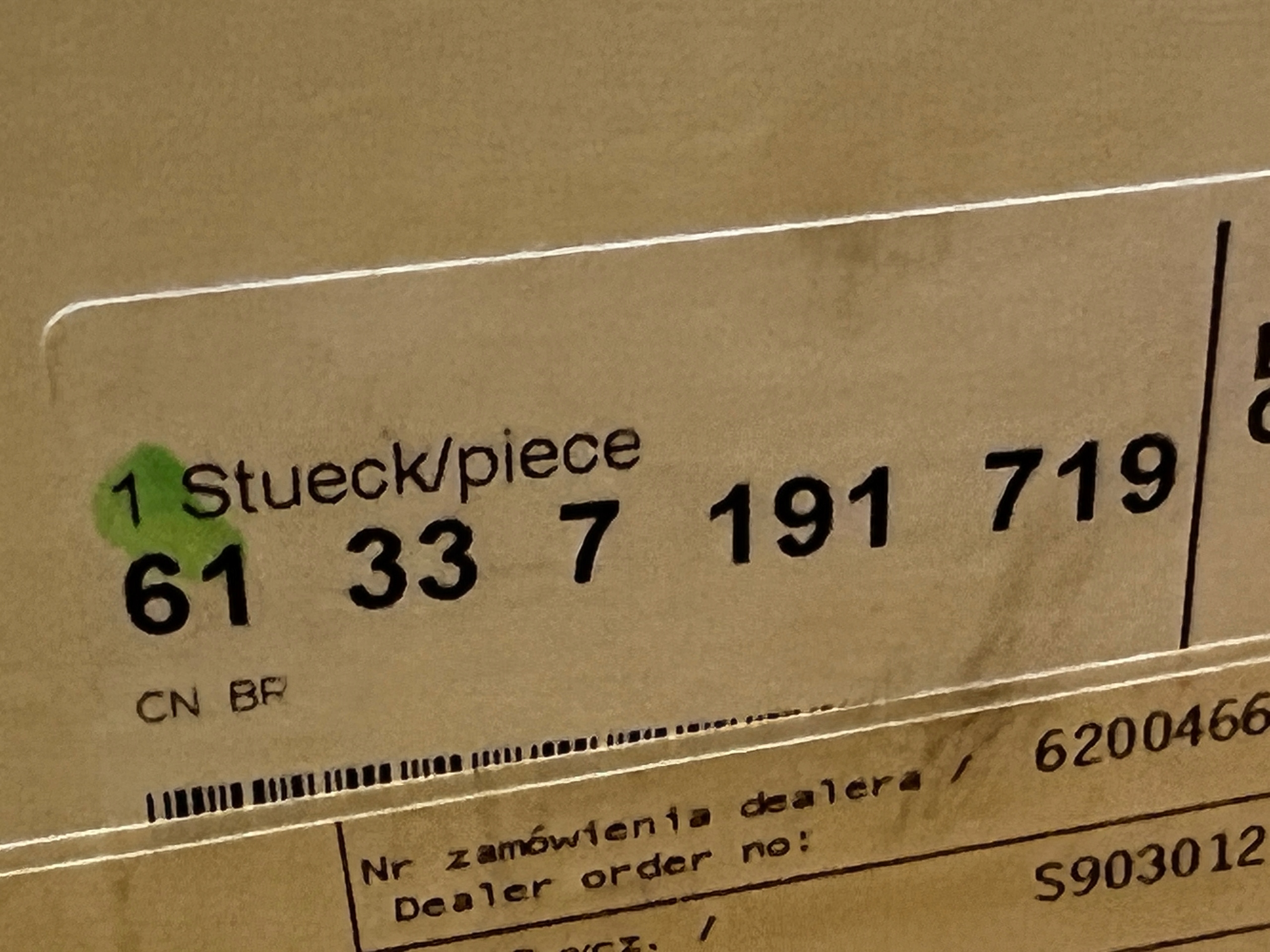Каталожный номер запчасти: | 61337191719, 7191719 |