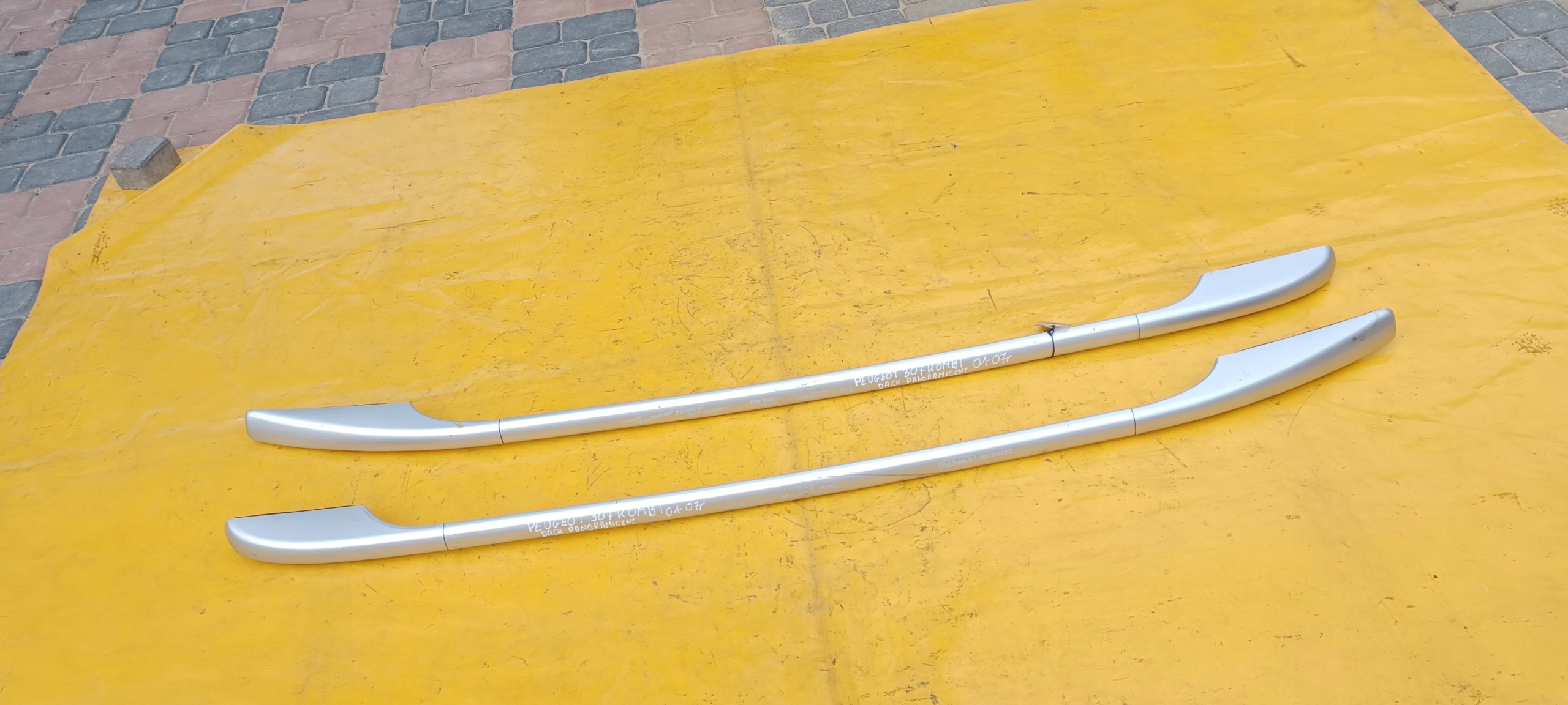 PRZEDMIOTEM AUKCJI JEST : RELINGI DACHOWE PRAWY LUB LEWY PEUGEOT 307 SW KOMBI 01-07r SREBRNY POD DACH PANORAMICZNY