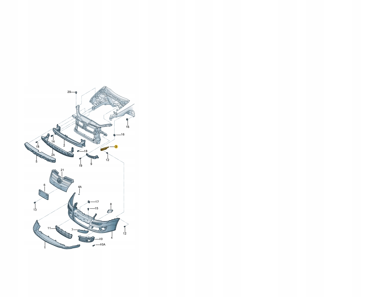 Wspornik element mocujący zderzak przedni z błotnikiem.
