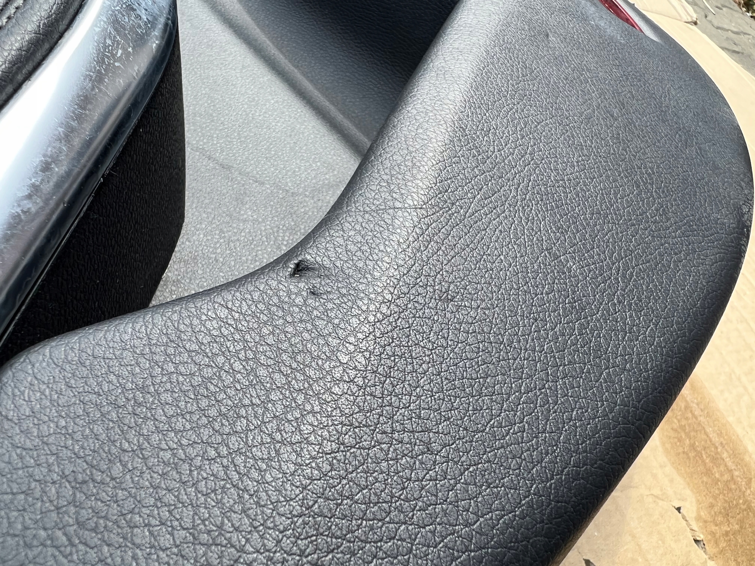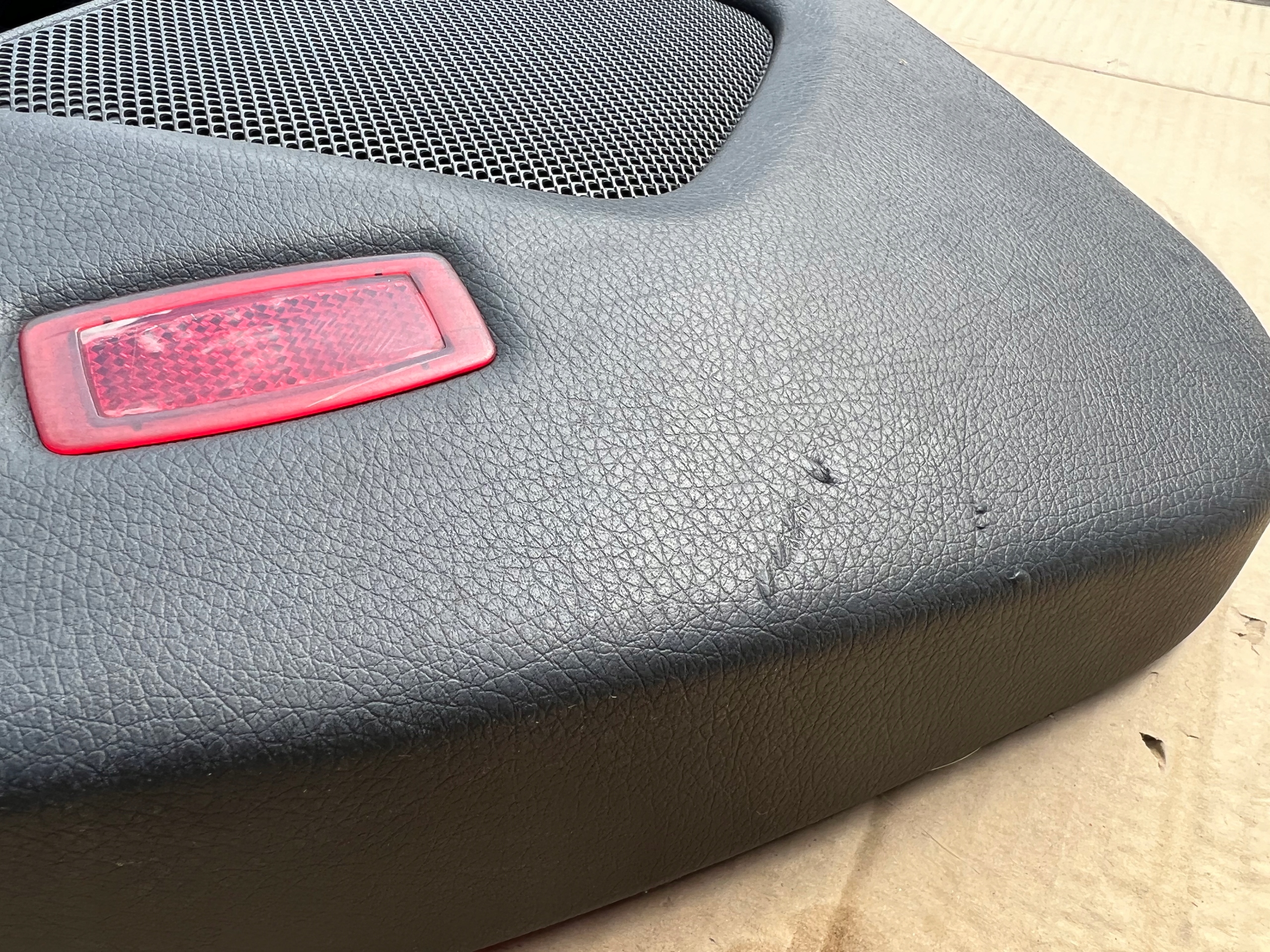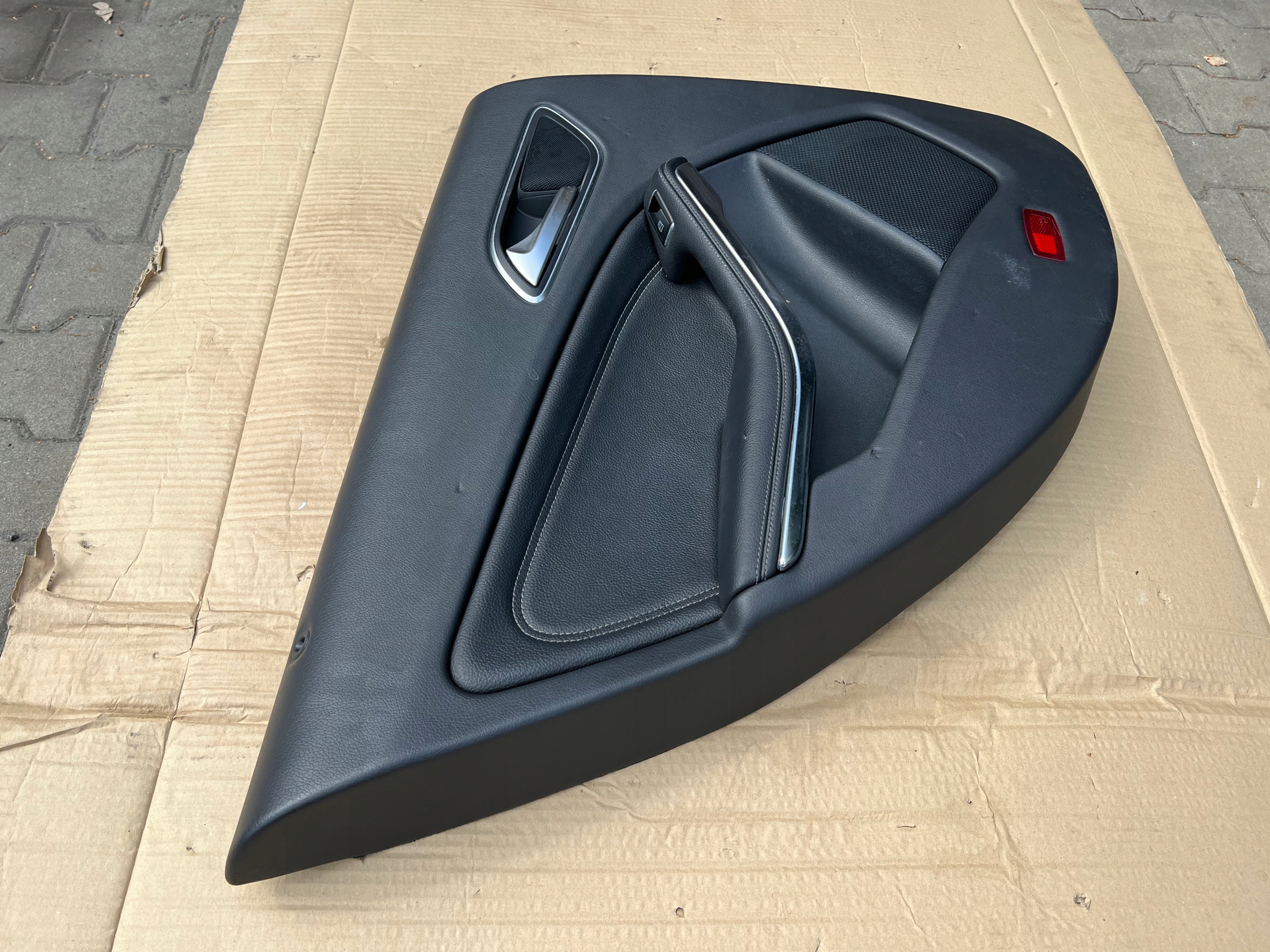 Mercedes CLA W117, A W176 2017r. Boczek / Tapicerka drzwi lewy tył, skóra (odgniecenia transportowe pomazane na zdjęciach), wersja Europejska. ORYGINAŁ MERCEDES