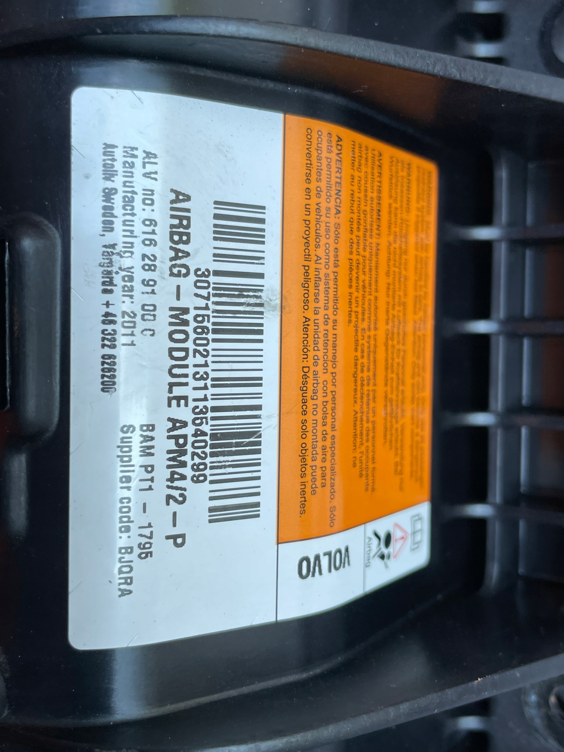 616289100c подушка подушка безопасности пассажира volvo s60