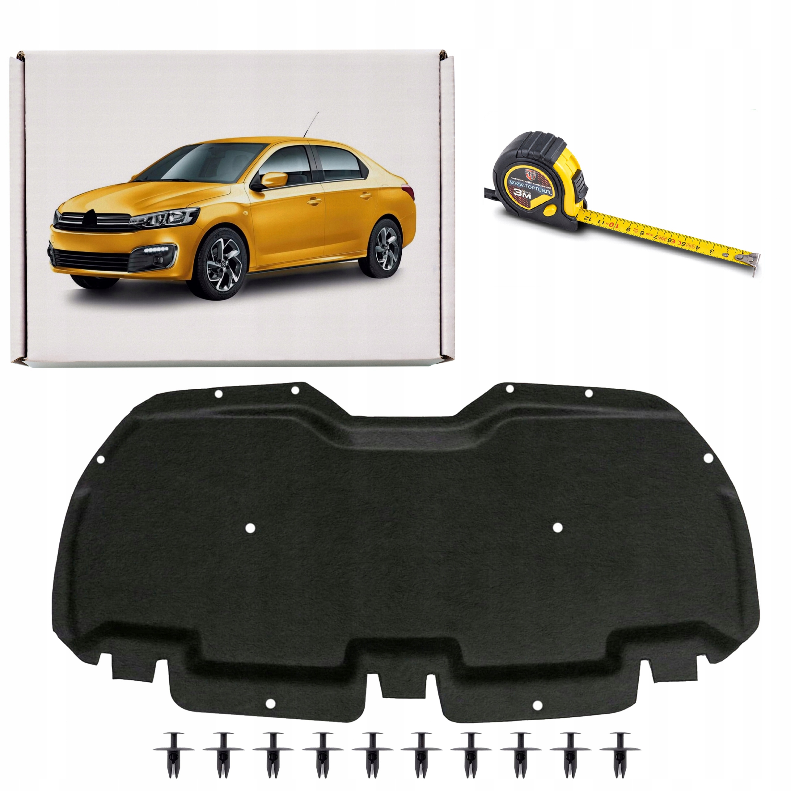 Wygłuszenie maski z kompletem spinek mocujących, do CITROEN C-ELYSEE II 2012+.