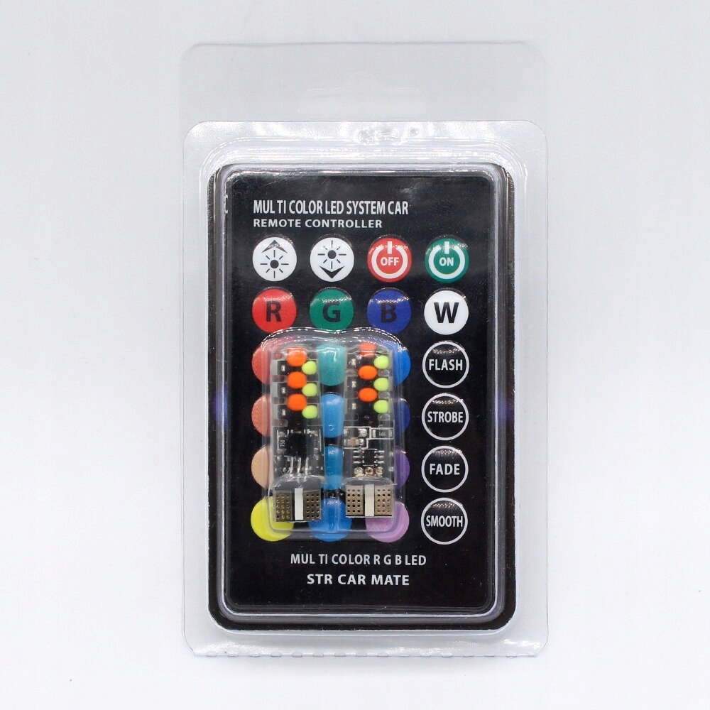Wysokiej jakości oświetlenie LED RGB podkreśli zarówno z zewnątrz jak i wewnątrz kształty Twojego samochodu. Dzięki możliwości bezprzewodowej kontroli za pomocą pilota może stworzyć niesamowite efekty wizualne. Żarówki można stosować jako światła pozycyjne, podświetlenie tablicy rejestracyjnej , oświetlenie schowka, drzwi, bagażnika i innych elementów wnętrza samochodu.