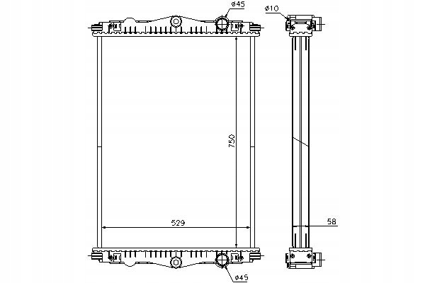 - Wymiary radiatora: 750-529-58
