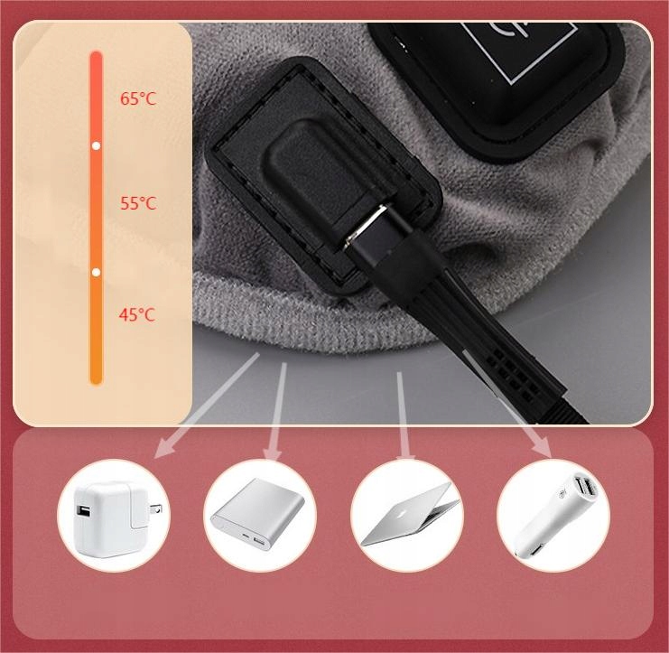 Korzystając z interfejsu ładowania USB typu C, można łatwo dostosować do wtyczek ładowania telefonów komórkowych, power banków, laptopów, gniazd zapalniczki samochodowej (brak w zestawie).