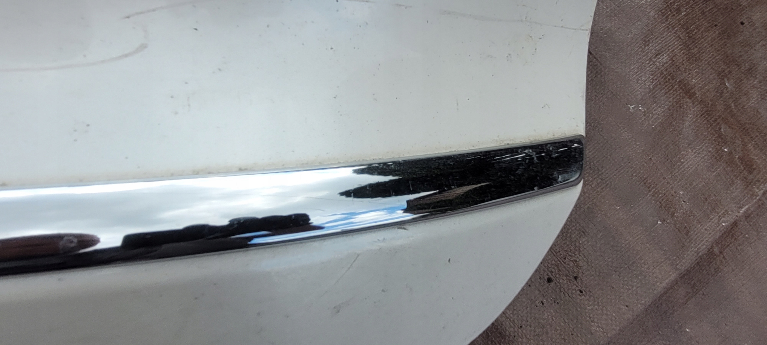 Używana oryginalna blenda, lekko uszkodzona. Lekkie skazy na chromie. Podklejony jeden zaczep.