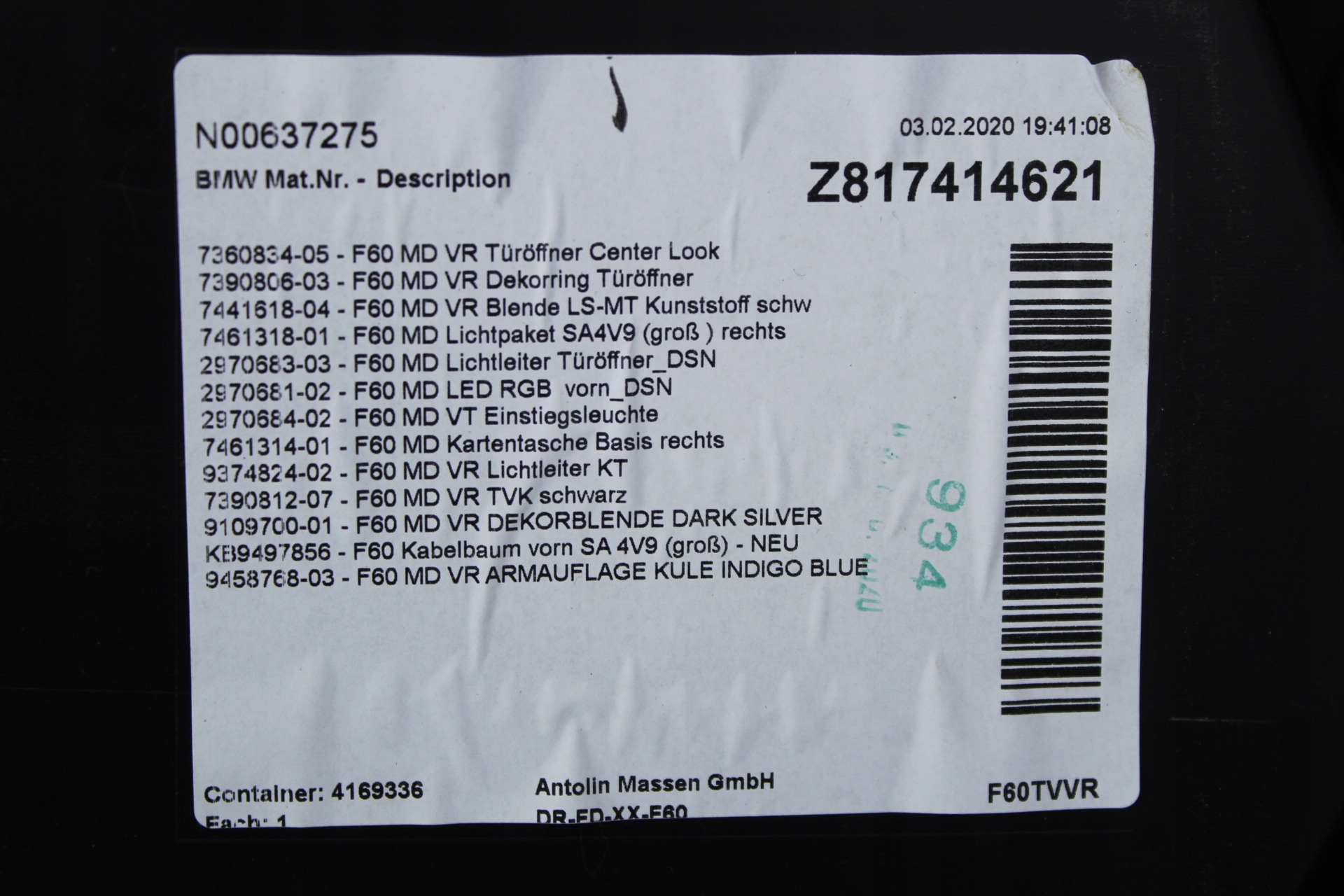 PRZEDMIOT AUKCJI - CZĘŚCI BMW