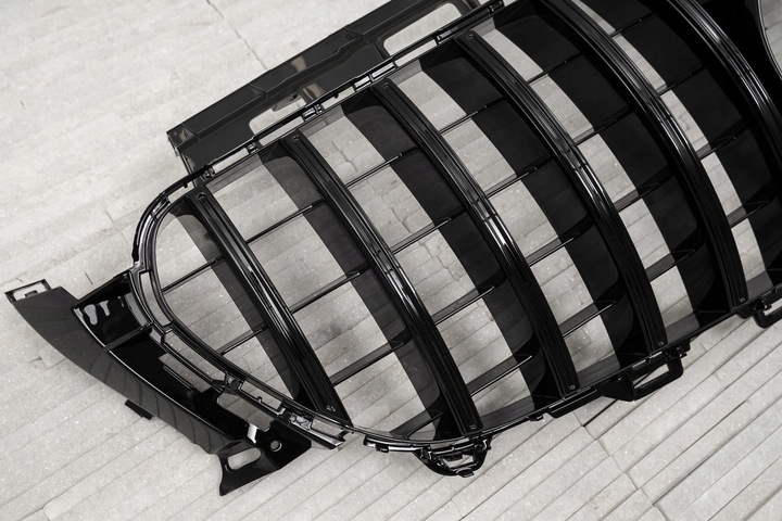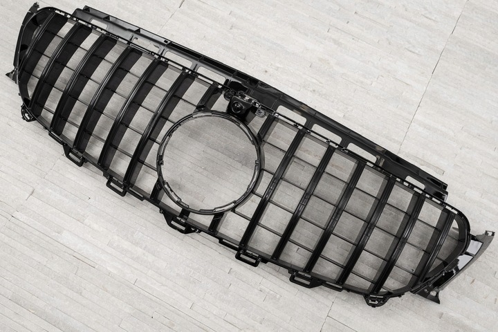Grill przedni, model GT / PANAMERICANA zaprojektowany dla MERCEDES E-CLASS W213 2016-2020 przed faceliftingiem (WERSJA Z FABRYCZNĄ KAMERĄ). Dedykowany grill zaprojektowany został w stylu charakterystycznym dla samochodów z segmentu GT. Kratka grilla ozdobiona została szerokimi poprzeczkami, które nieodzownie przywodzą na myśl budzące respekt, pełne mocy samochody z najwyższej półki. Element zachwyca sportowym charakterem, dzięki czemu doskonale współgra z imponującym designem Mercedesa.