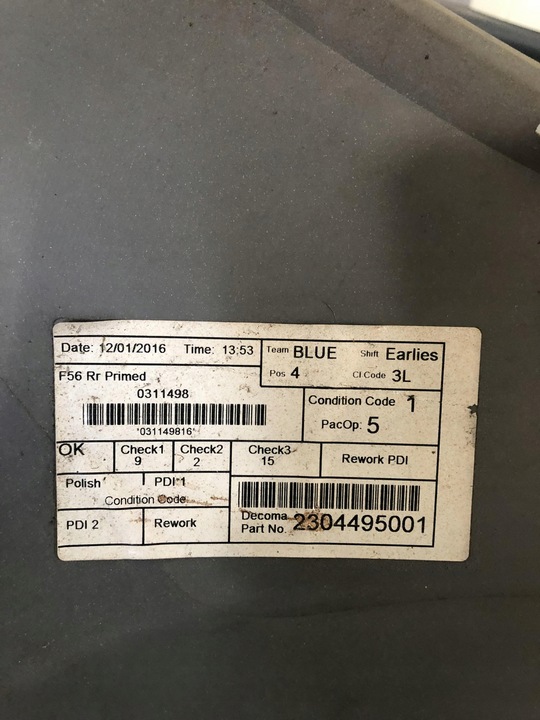 Mini Cooper F56 zderzak tył