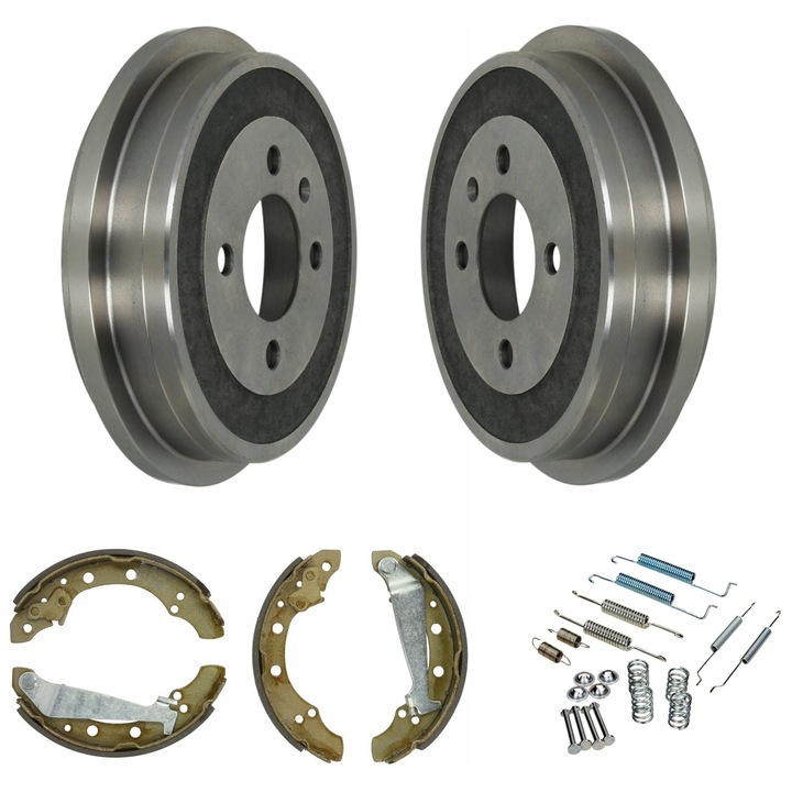 NOWY KOMPLET 2x BĘBEN HAMULCOWY + SZCZĘKI + ZESTAW MONTAŻOWY
