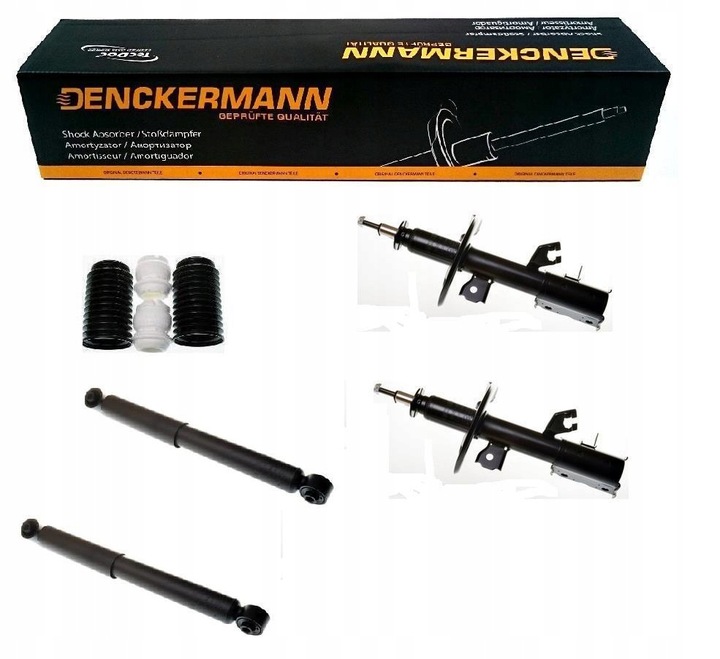 KOMPLET AMORTYZATORÓW GAZOWYCH RAZEM Z OSŁONAMI I ODBOJAMI NA PRZÓD i TYŁ FIRMY DENCKERMANN