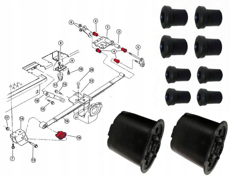 4 x TYLNA TULEJA RESORA ORAZ WIESZAKA RESORA (MAŁA)