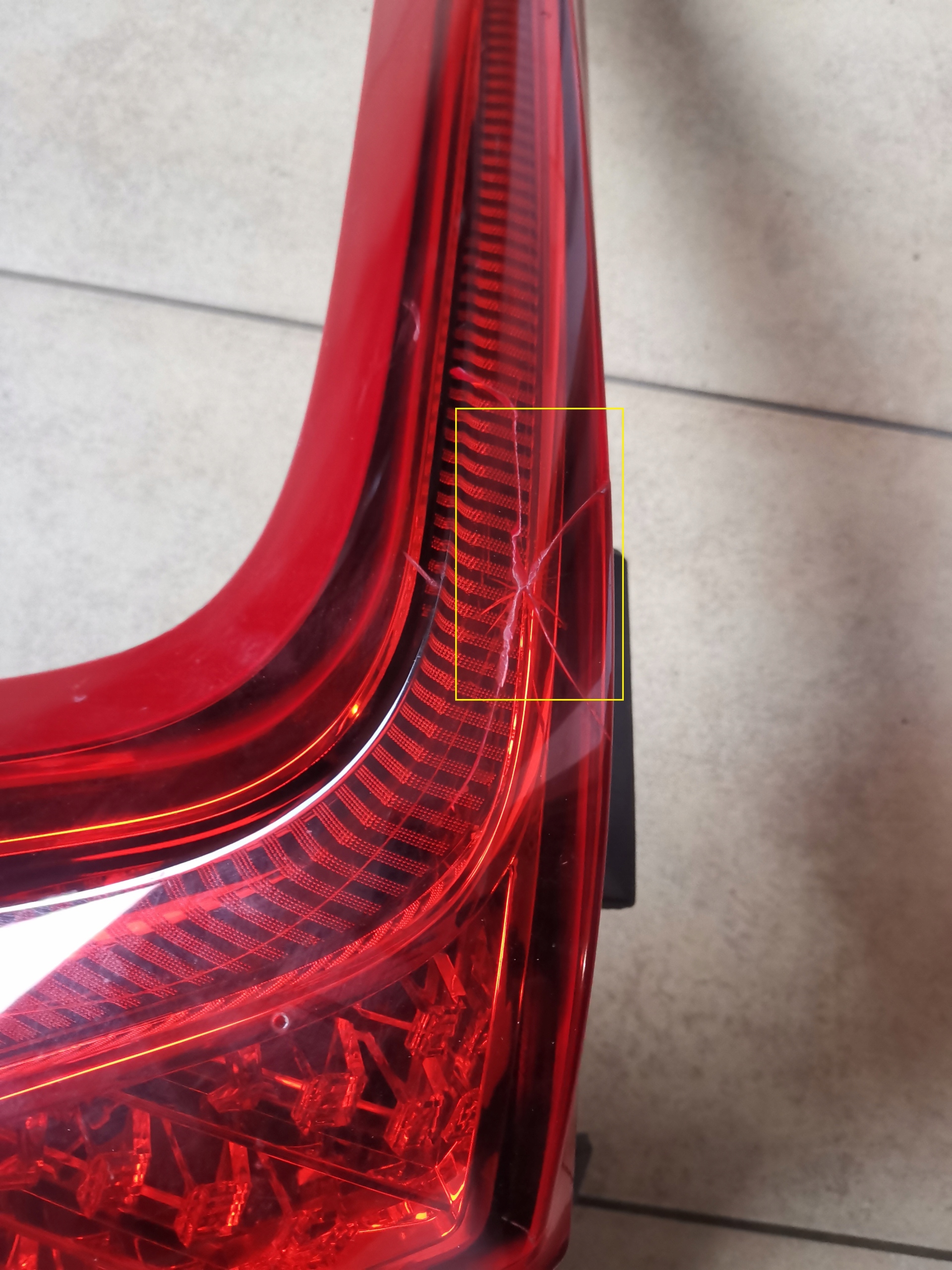 Lampa posiada małe pęknięcie plastiku widoczne na zdjęciach oraz niewielkie ryski, poza tym lampa ładna.