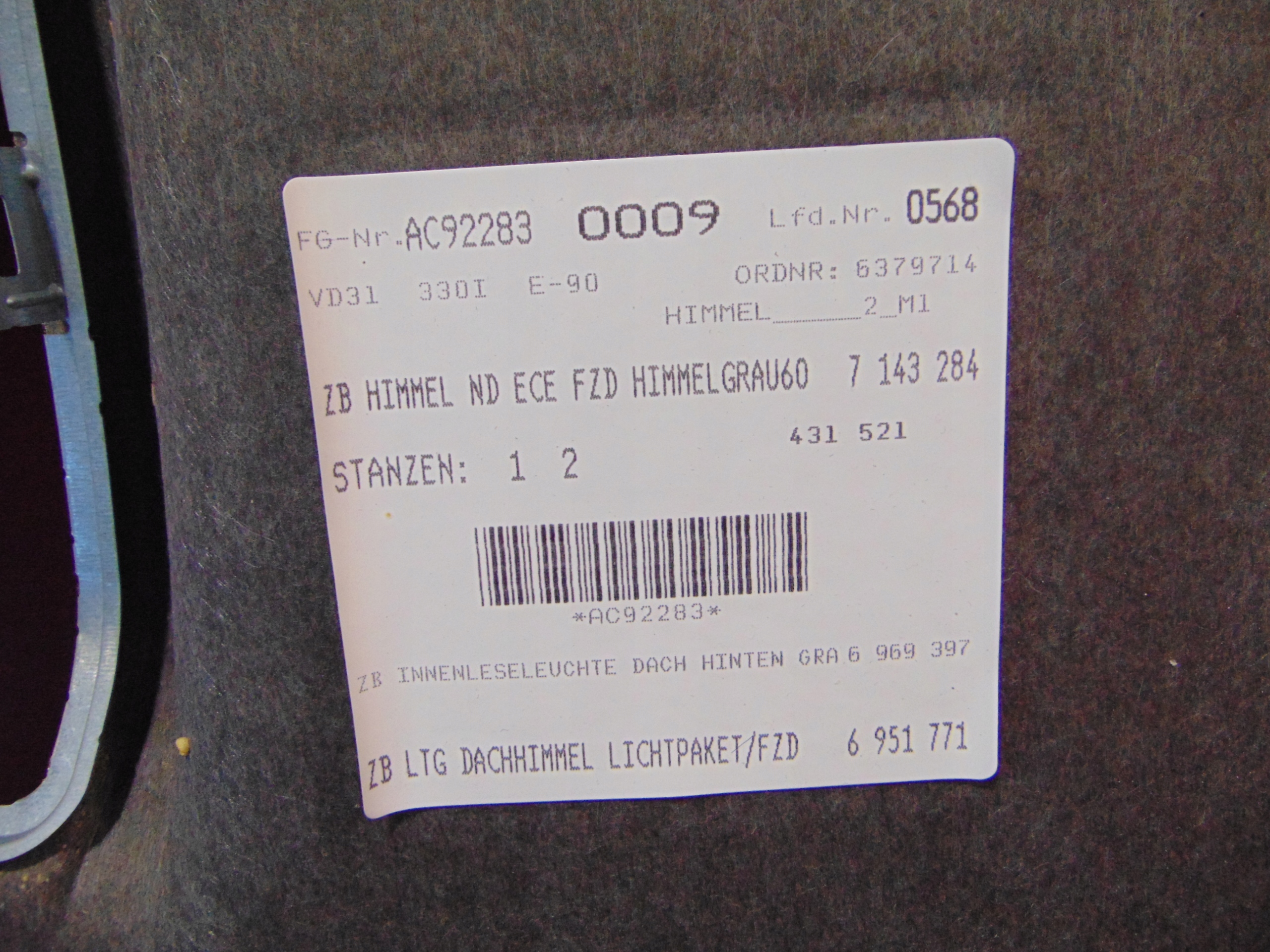 Bmw e90 sedan потолок потолок 7143284