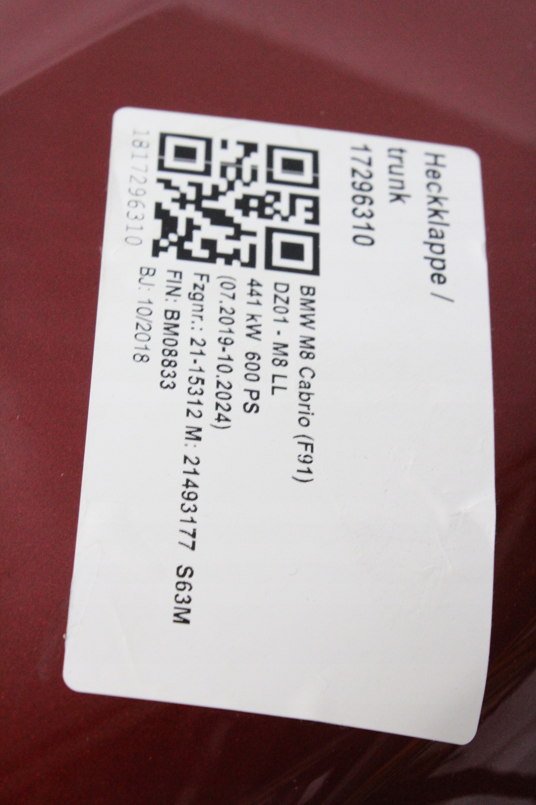 Крышка зад багажника bmw g14 f91 m8 cabrio lip c1x