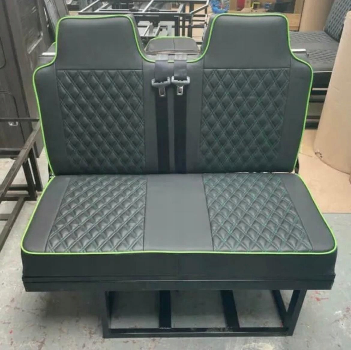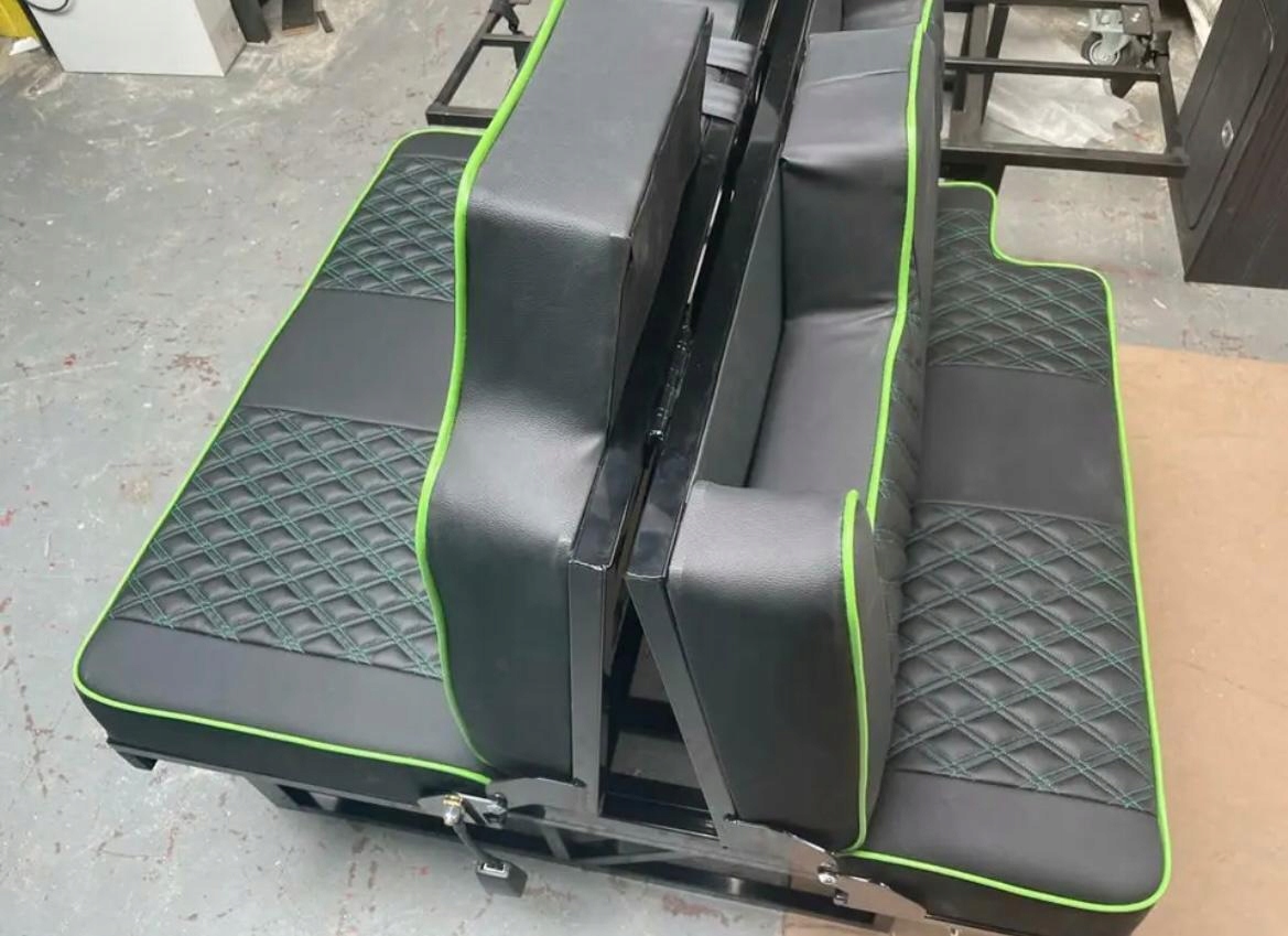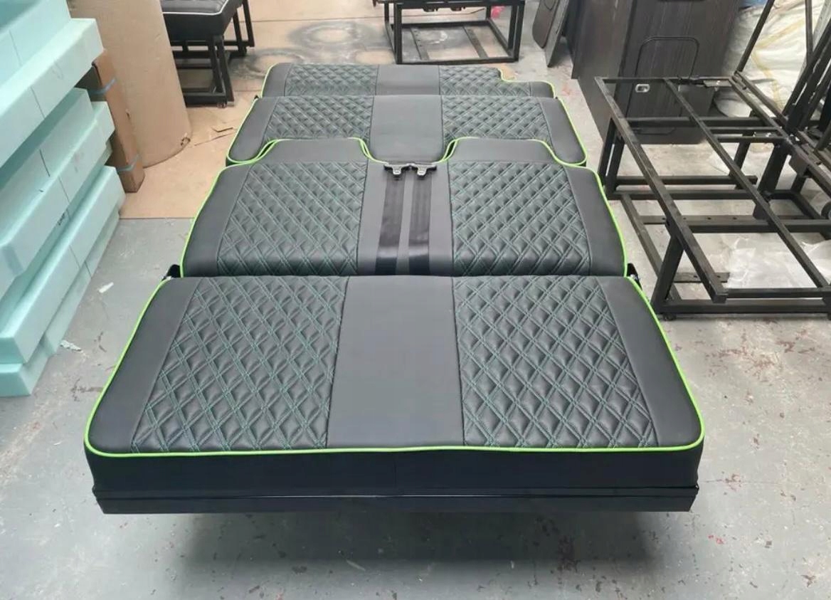 Przedmiotem aukcji jest siedzenie rozkładane, które pełni funkcje wygodnego dużego łóżka. Siedzenie wyposażone jest w pasy bezpieczeństwa. Rama siedziska nie uszkadza podłogi oraz wyposażenia podczas rozkładania. Łóżko jest ściśle dopasowane do wnętrza pojazdu.