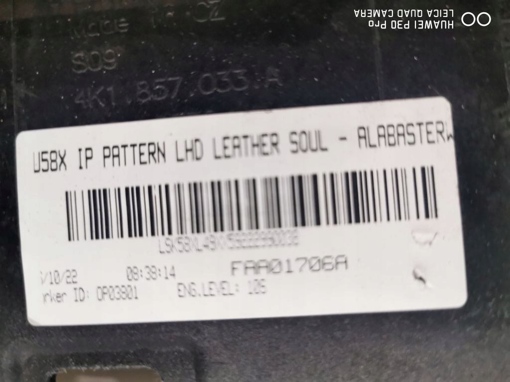 Audi a6 a7 c8 кожа гладкая белая nić alabaster консоль подушка безопасности панель