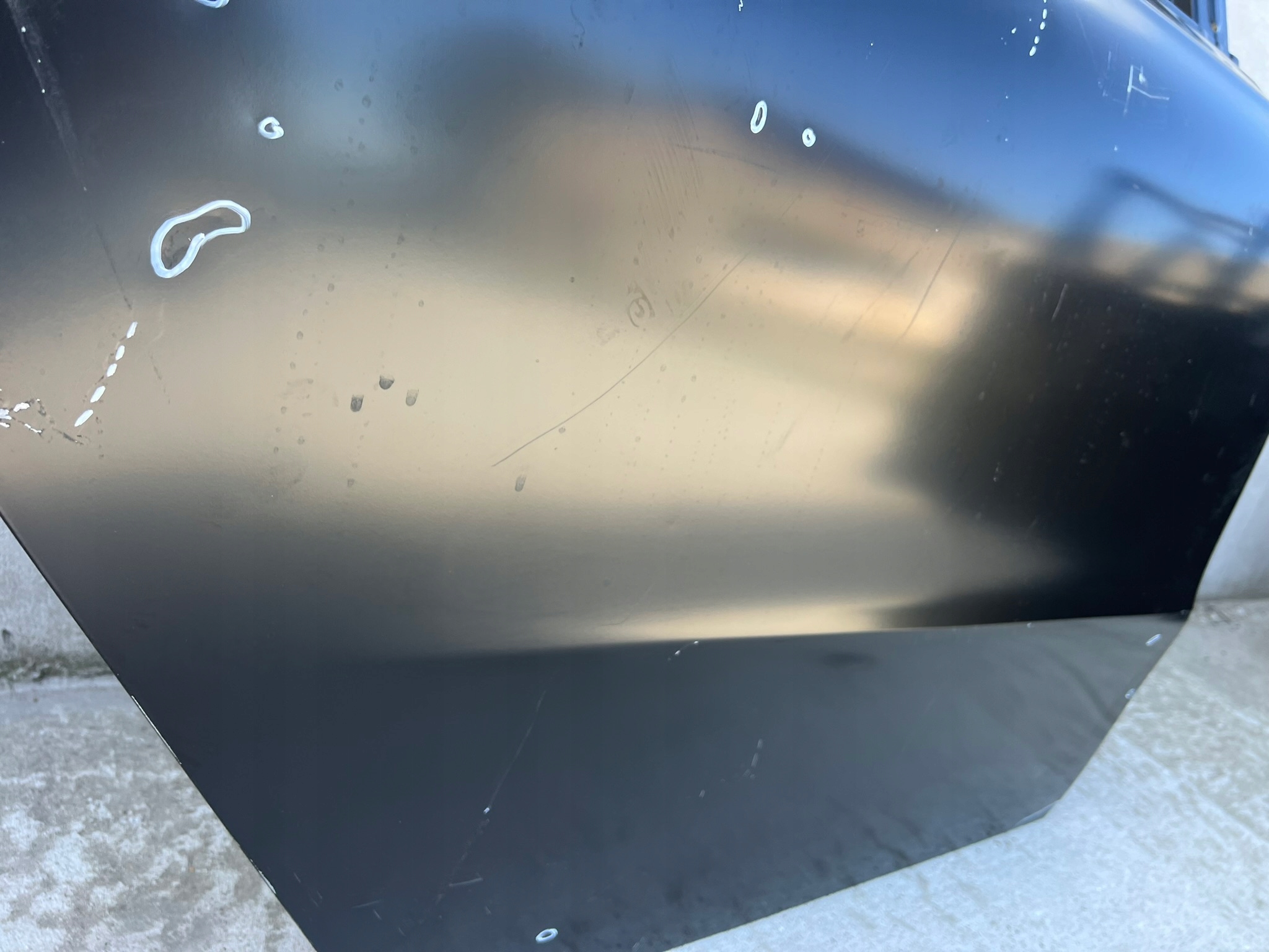DRZWI NOWE ORYGINALNE, NIEMALOWANE, USZKODZENIE TYLKO W MIEJSCU, GDZIE ZAZNACZONO BIAŁY MARKEREM.