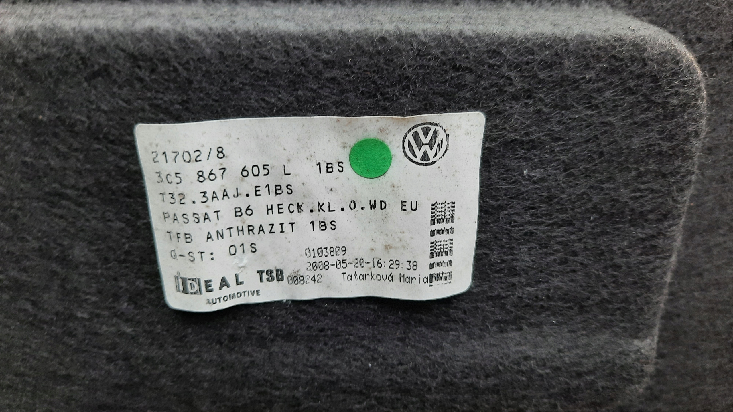 | Каталожный номер запчасти: | VW PASSAT B6 TAPICERKA KLAPY BAGAŻNIKA TYŁ SEDAN |