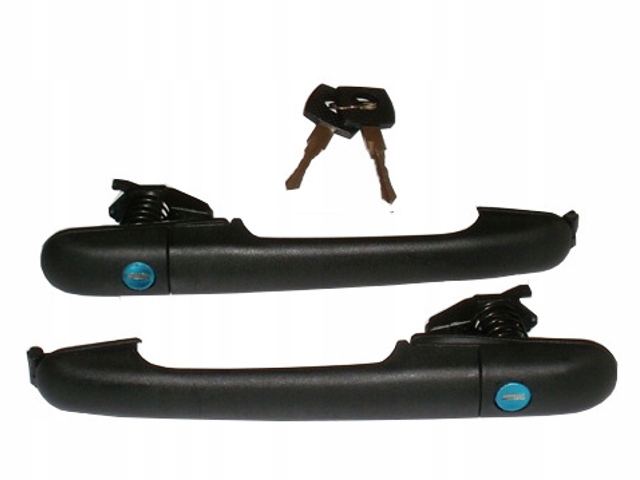 Zestaw klamek, wkładek drzwi przód.