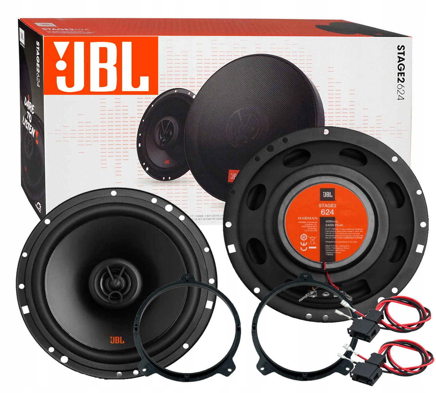 FABRYCZNIE NOWE GŁOŚNIKI FIRMY JBL MODEL STAGE 2 624 W KOMPLECIE Z DYSTANSAMI I REDUKCJAMI DO PODŁĄCZENIA Z FABRYCZNĄ INSTALACJĄ SAMOCHODU
