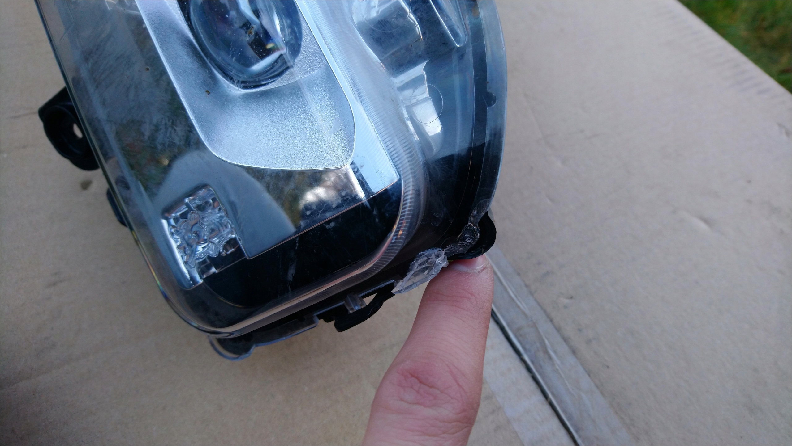 DEMONTAŻ. DELIKATNIE USKUBANE SZKIEŁKO W CZĘŚCI, KTÓREJ NIE WIDAĆ PO ZALOŻENIU W ZDERZAK.