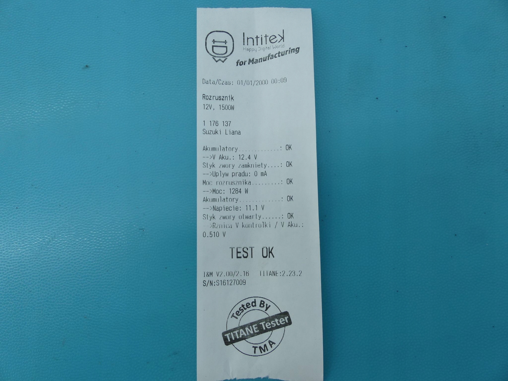 - Dodatkowe informacje: Testowany na stole probierczym Titane,