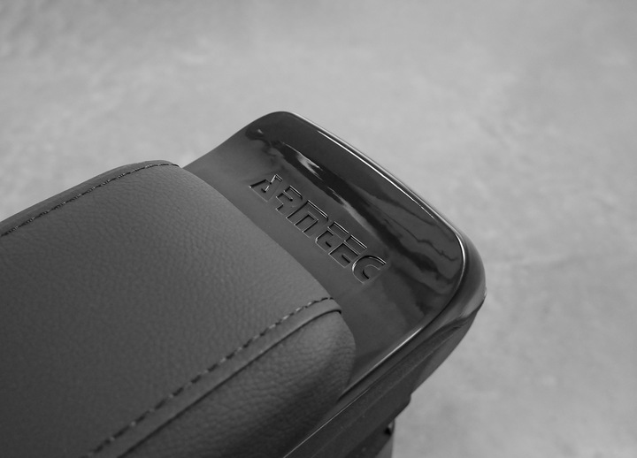 Podłokietnik posiada 3-stopniową regulację kąta nachylenia, dzięki czemu można ustawić go indywidualnie do potrzeb każdego kierowcy. Wykonany jest z tworzywa sztucznego ABS oraz skóry ekologicznej. Wewnątrz znajduje się zamykany na magnesy, praktyczny schowek, w którym pomieścisz wszystkie niezbędne drobiazgi i będziesz je mieć dostępne pod ręką, bez odrywania wzroku od drogi. Natomiast pod podłokietnikiem znajduje się niewielka przegródka, do której możemy włożyć drobne przedmioty, jak choćby żeton do wózka sklepowego.
