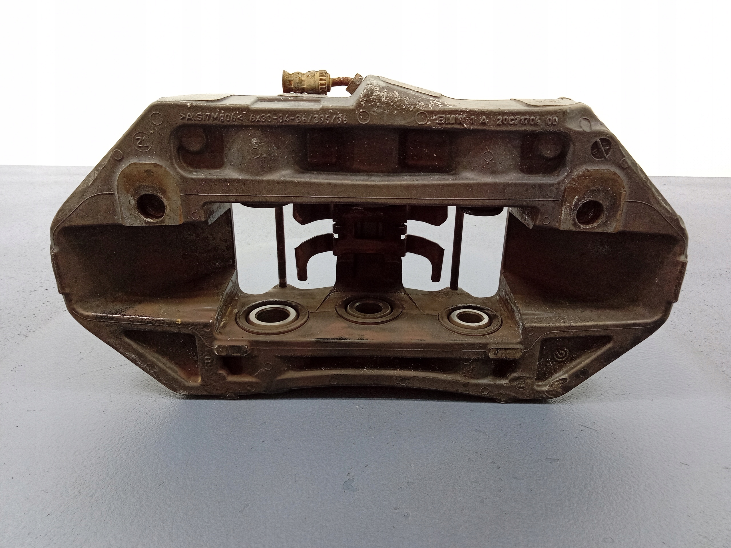 Opis: producent Brembo, 6x30-34-36/395/36, sześciotłoczkowy, uszkodzenia widoczne na zdjęciu, okopcenie. -jakość B && BMW M3 G80 3.0B ZACISK PRZÓD PRAWY 20C71706