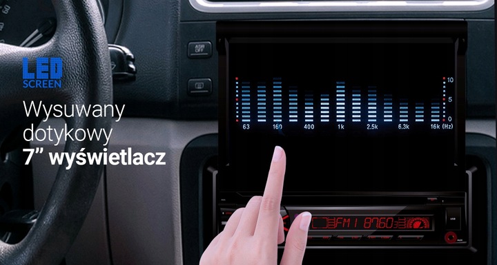 Wysuwany ekran i standardowy wymiar radia 1 DIN