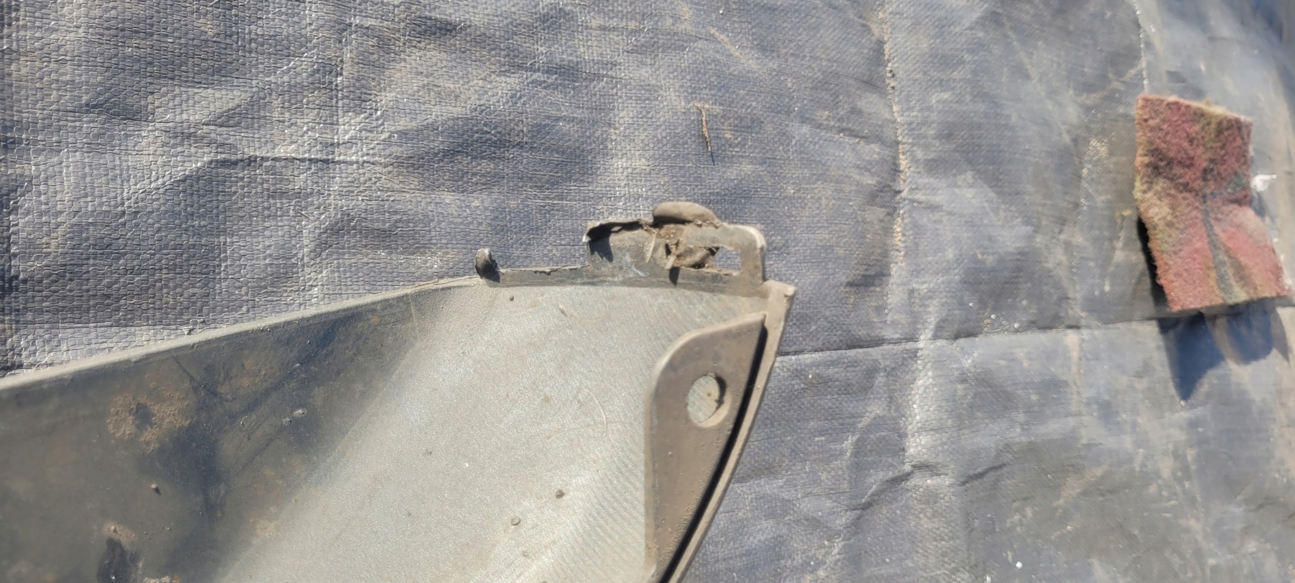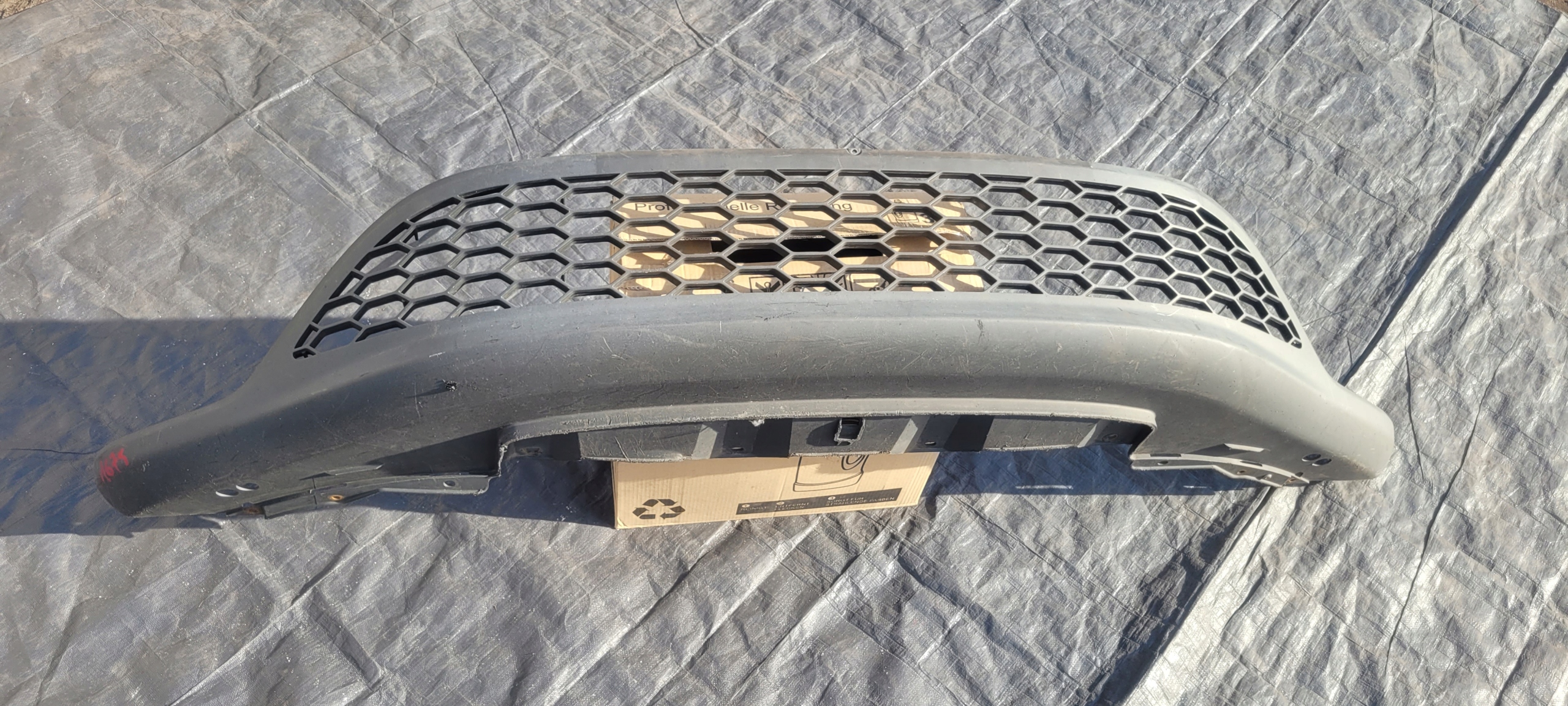 Używana oryginalna dokładka. Porysowana, urwany boczny zaczep.