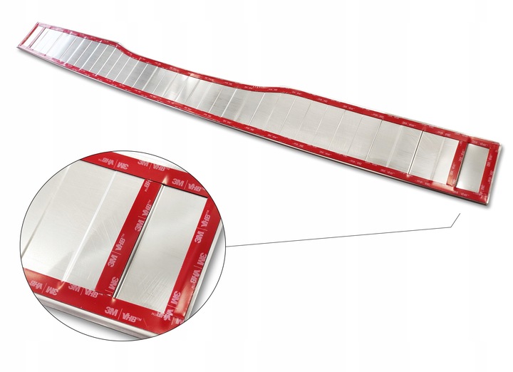 Nakładka wykonana z wysokiej jakości, lustrzanej stali nierdzewnej. Posiada już dwustronną, bardzo mocną taśmę klejącą.