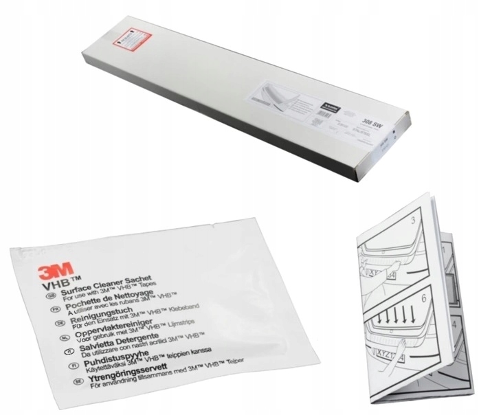Nakładkę otrzymasz w solidnym opakowaniu wraz z instrukcją montażu krok po kroku oraz chusteczką odtłuszczającą firmy 3M.